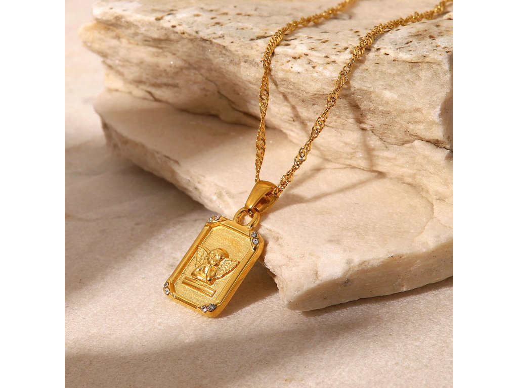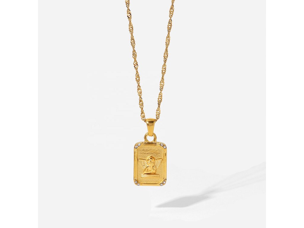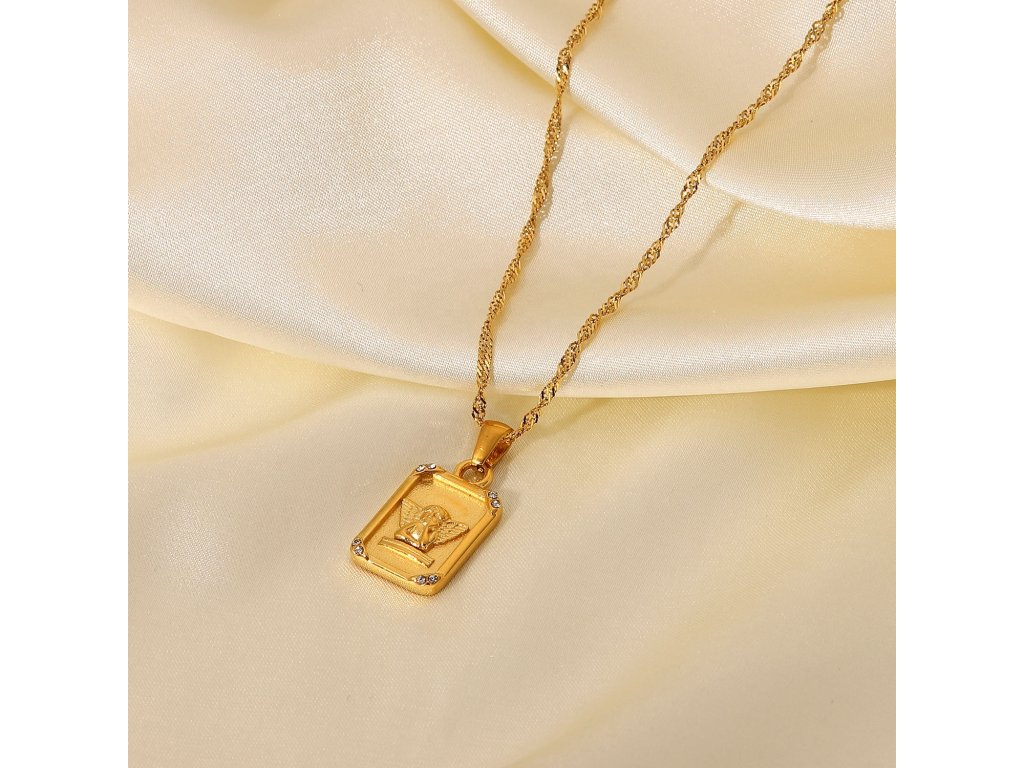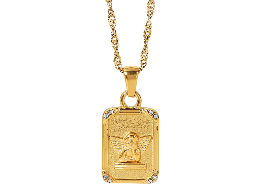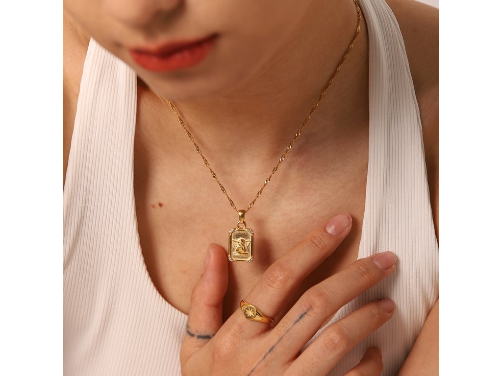 ELENYS Angel Grace vyniká obdélníkovým medailonkem s andělem, jehož jemné linie doplňují drobné zirkony v rozích. Každý detail odráží světlo a působí jako tichý ochránce a talisman štěstí.