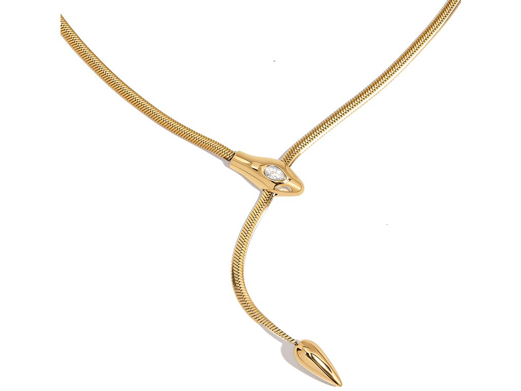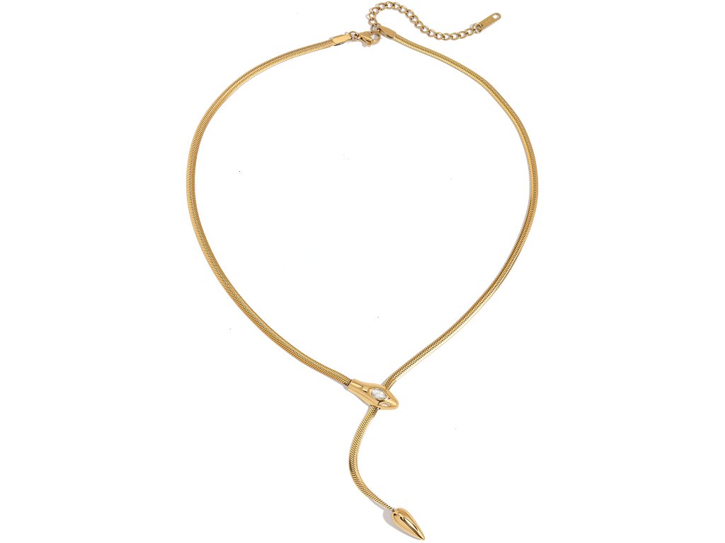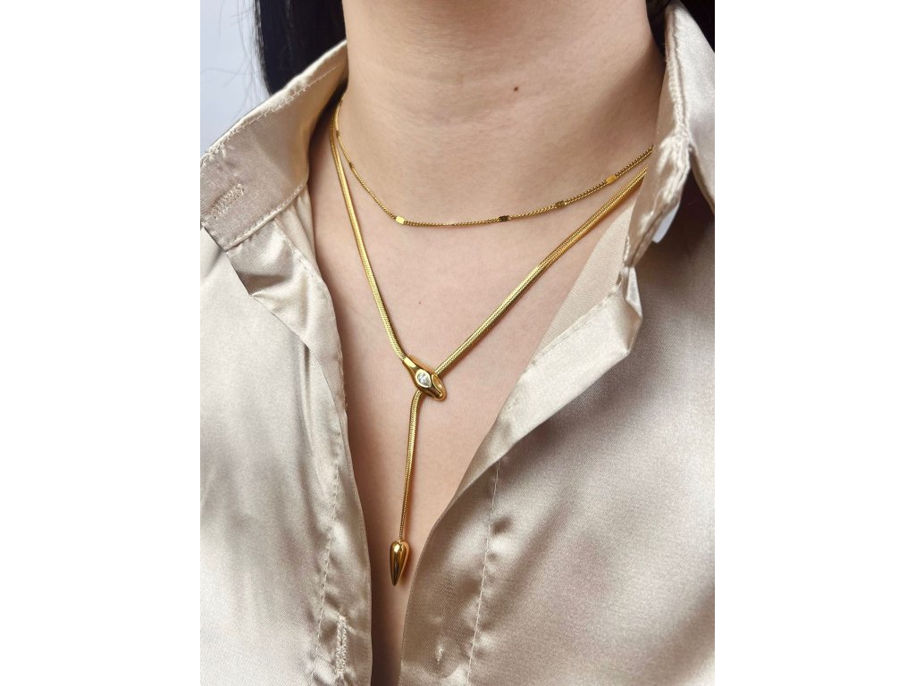 Hladký hadí řetízek a prodloužený závěs – elegantní linie, která zvýrazní výstřih.