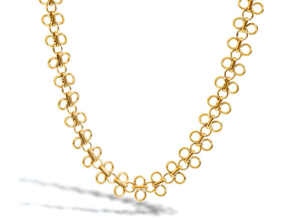 ELENYS Aurelia Loop je choker, který stojí na detailu – jemná očka připomínají drobné květy a vytváří efekt sofistikované textury. Působí moderně, ale zároveň nadčasově – přesně ten typ šperku, který „udělá“ celý outfit jedním tahem.