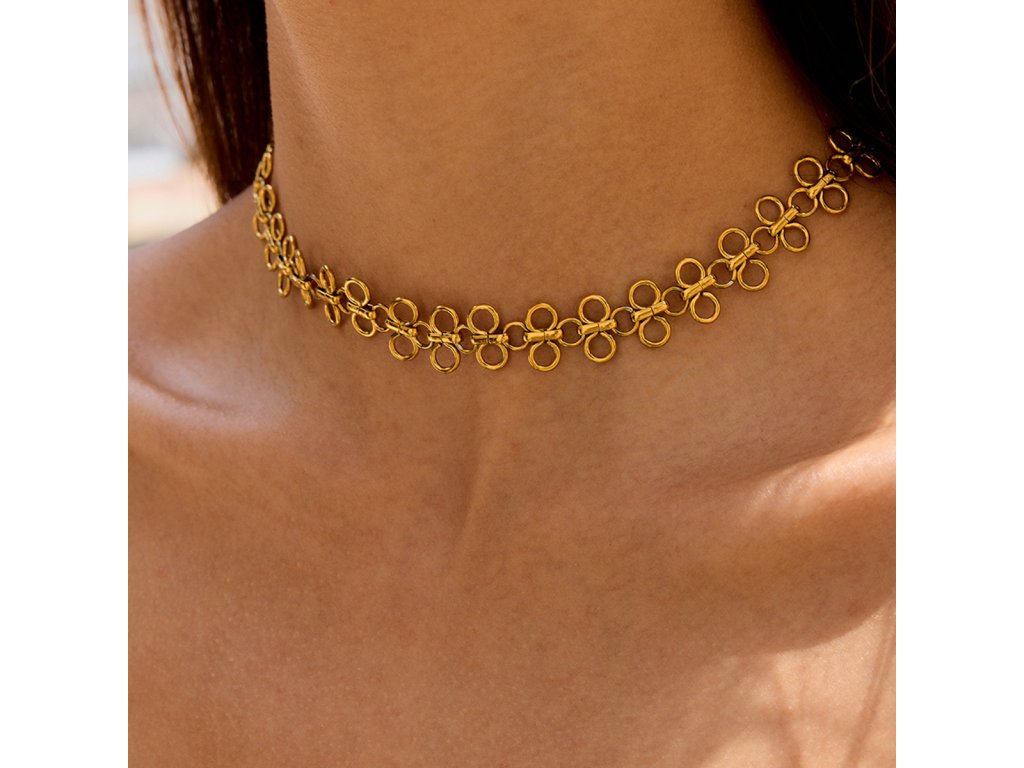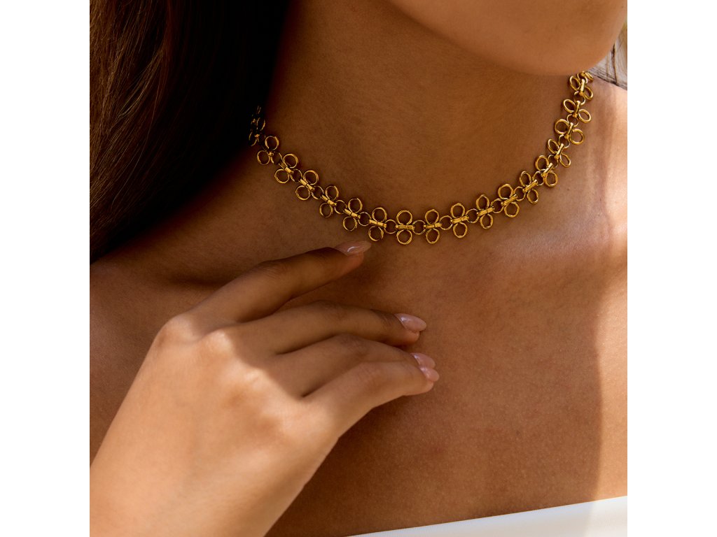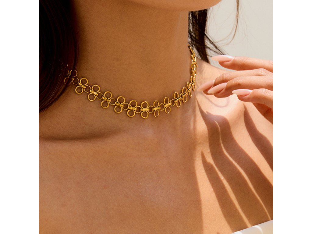 Aurelia Loop – elegantní choker s jemnými očky, který zvýrazní krk čistou, zlatou linií a dodá tvému vzhledu sebevědomý klid.