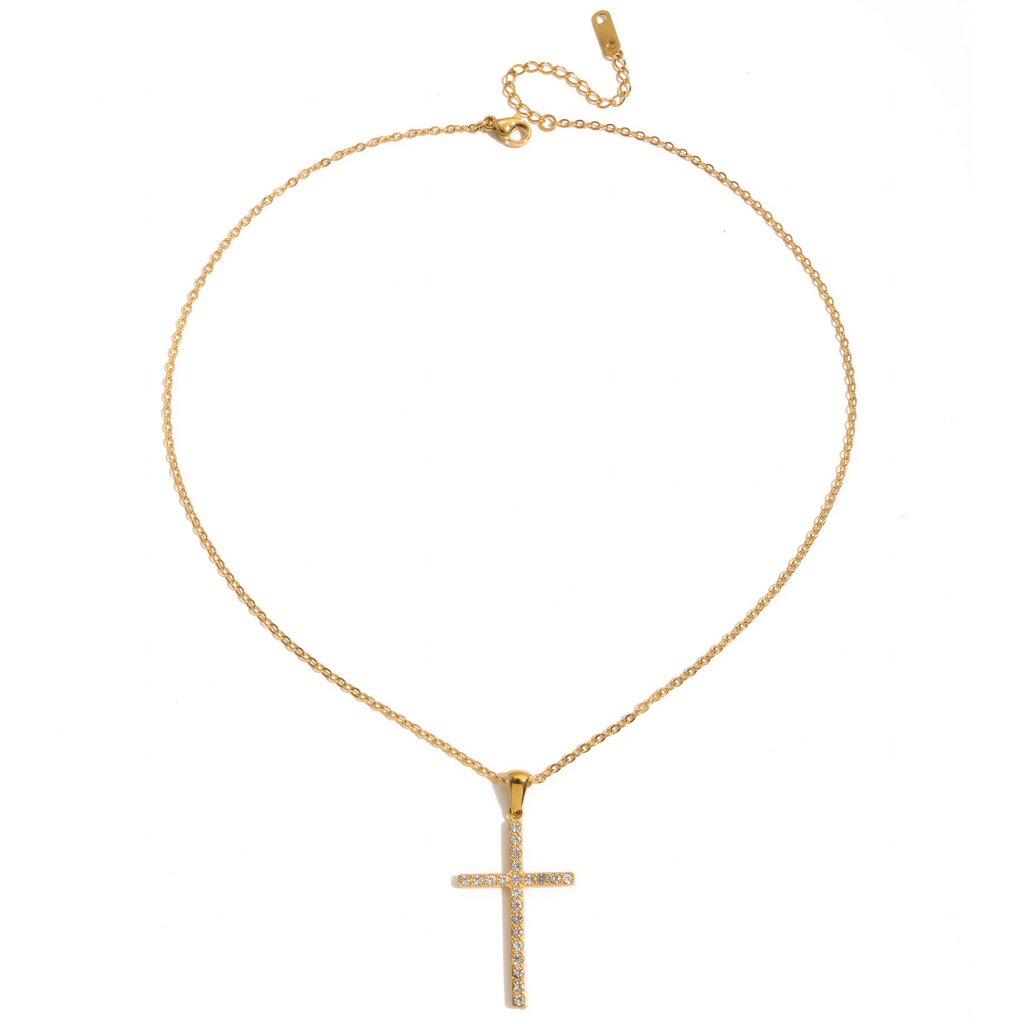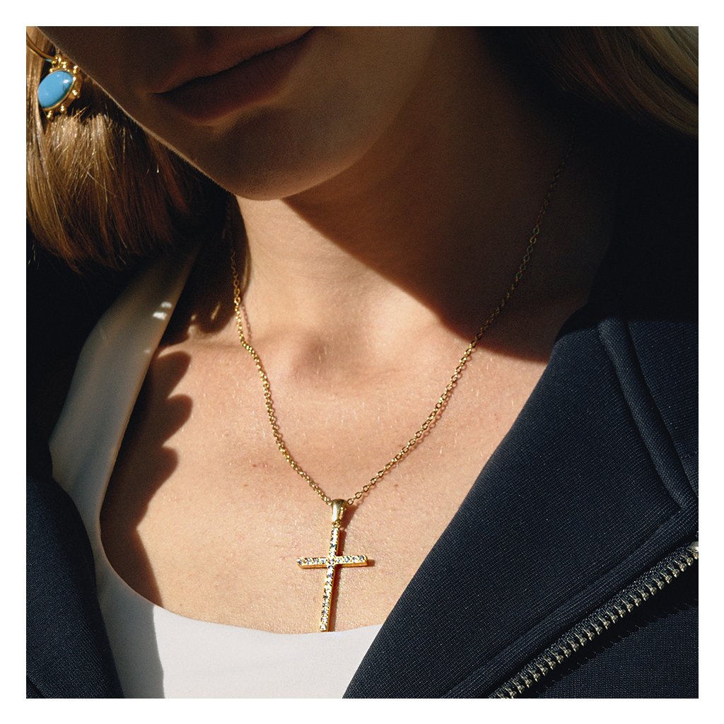 Kříž je osazen zirkony a vytváří tak souvislý a kultivovaný třpyt bez rušivého efektu. Délka řetízku je 40,5 cm + 5 cm pro pohodlné nastavení, kříž má výšku 3,4 cm. Náhrdelník je voděodolný a hypoalergenní a váží pouze 3,9 g.