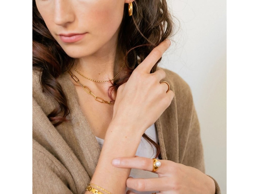 Náhrdelník ELENYS Grande Chain staví na minimalistické geometrii a větších oválných očkách, které dodají outfitu okamžitý statement. Nosit jej můžeš samostatně pro čistý vzhled nebo vrstvit s jemnějšími řetízky pro zajímavý kontrast.