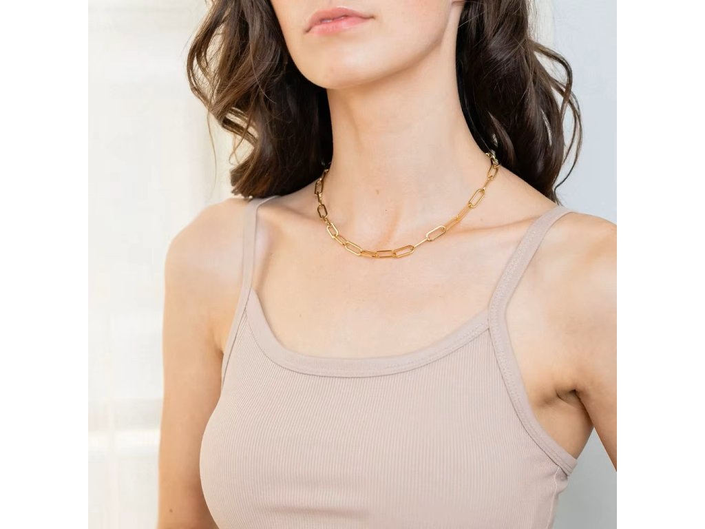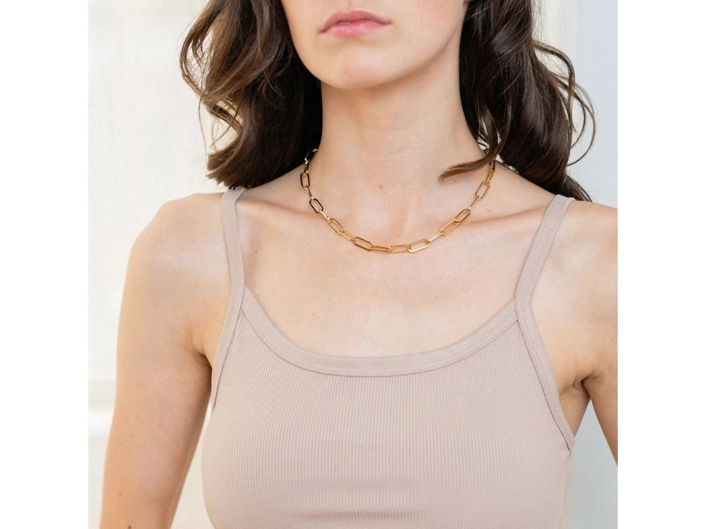Náhrdelník ELENYS Grande Chain staví na minimalistické geometrii a větších oválných očkách, které dodají outfitu okamžitý statement. Nosit jej můžeš samostatně pro čistý vzhled nebo vrstvit s jemnějšími řetízky pro zajímavý kontrast.