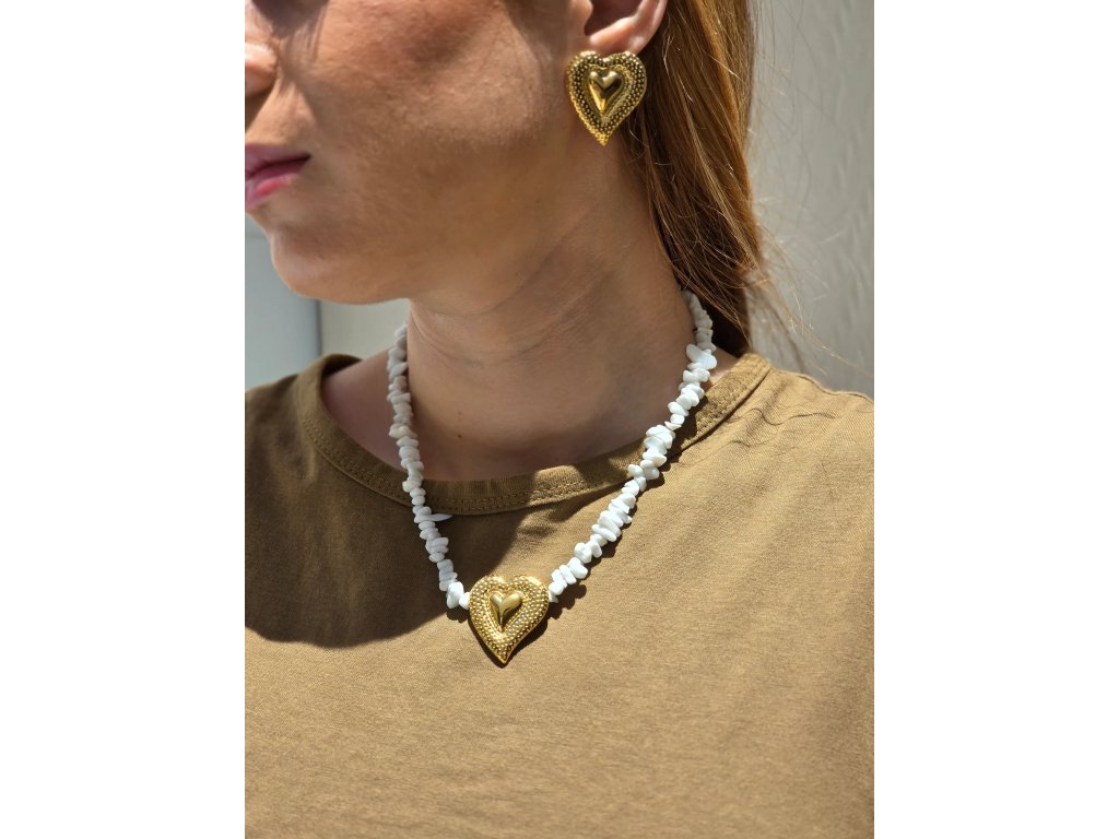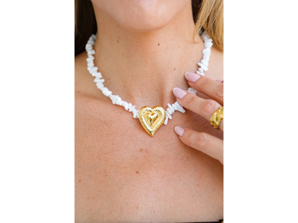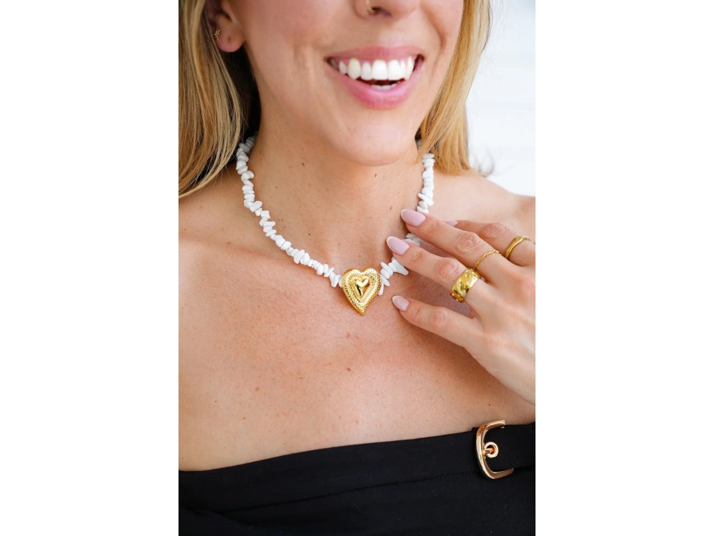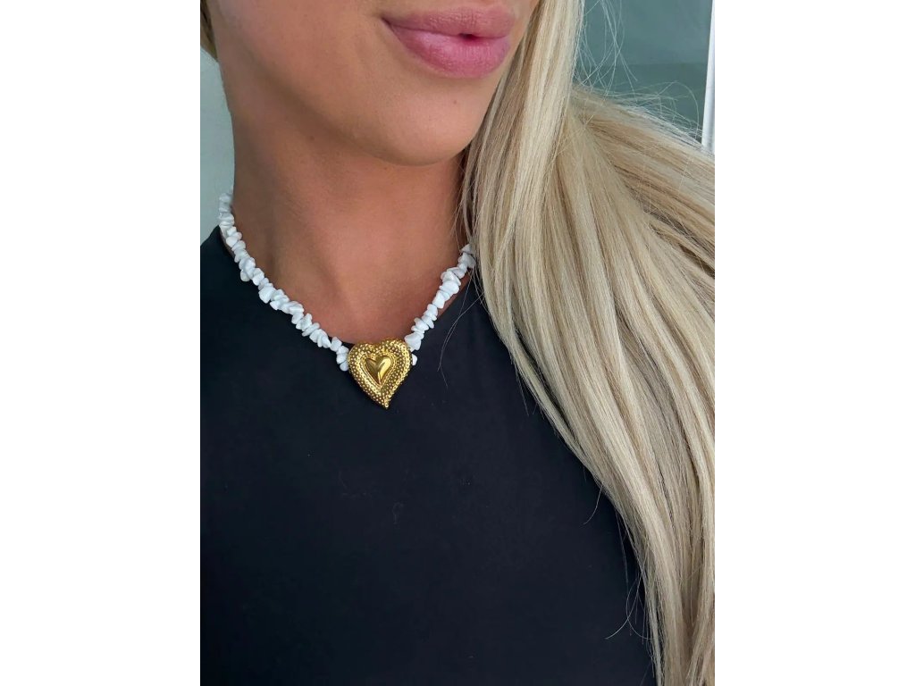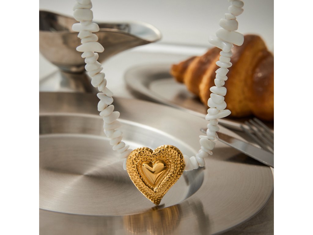 Bílý přírodní kámen a zlaté srdce – výrazný šperk s letní energií.