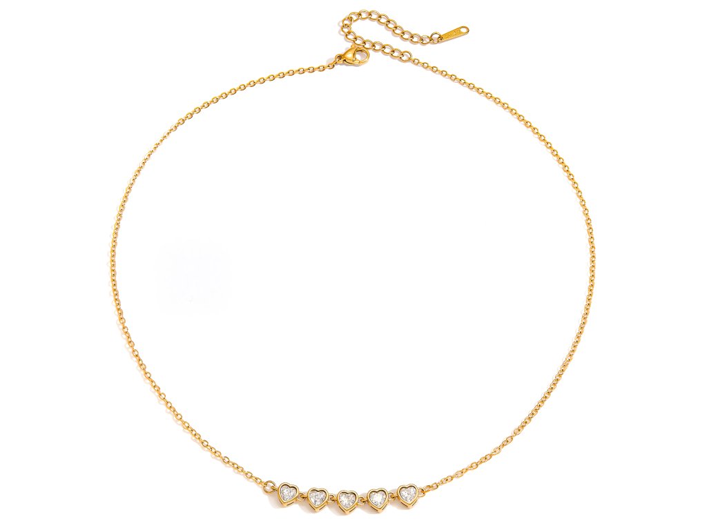 Heartline Chain – jemný řetízkový náhrdelník se srdcovými zirkony, který podtrhne emoce a ženskost v lehké, nadčasové linii.