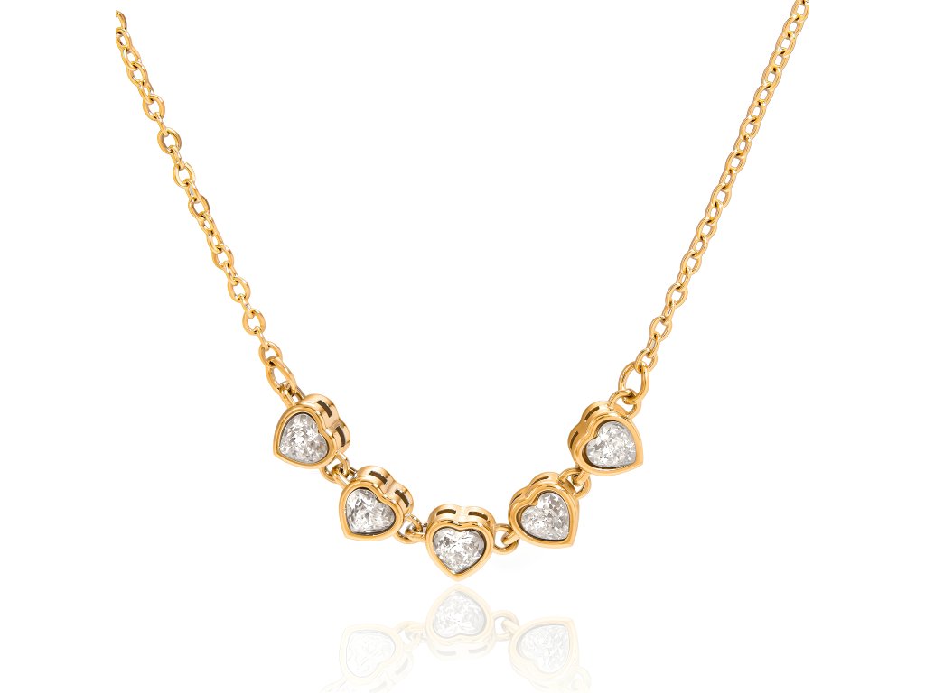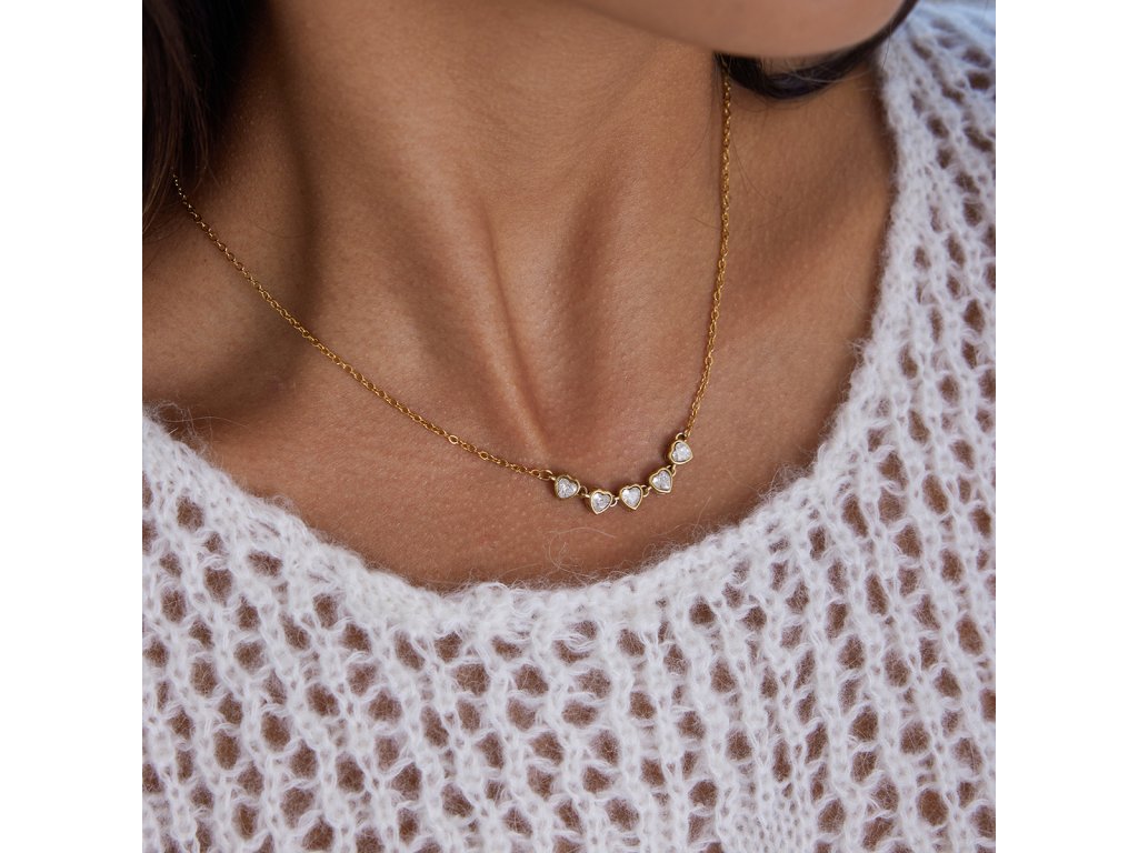 Srdcové zirkony jemně zachycují světlo a vytvářejí měkký, romantický třpyt, který nepůsobí přehnaně. Díky subtilnímu provedení je náhrdelník ideální pro každodenní nošení.