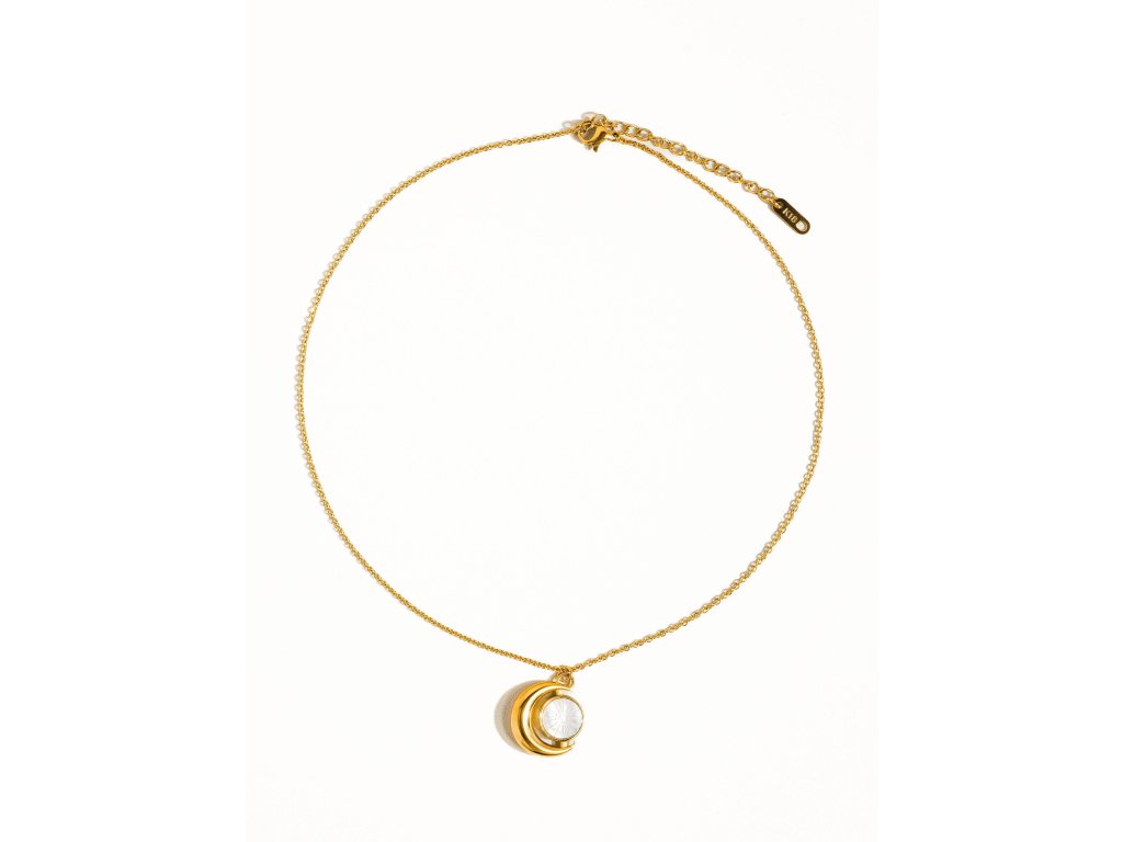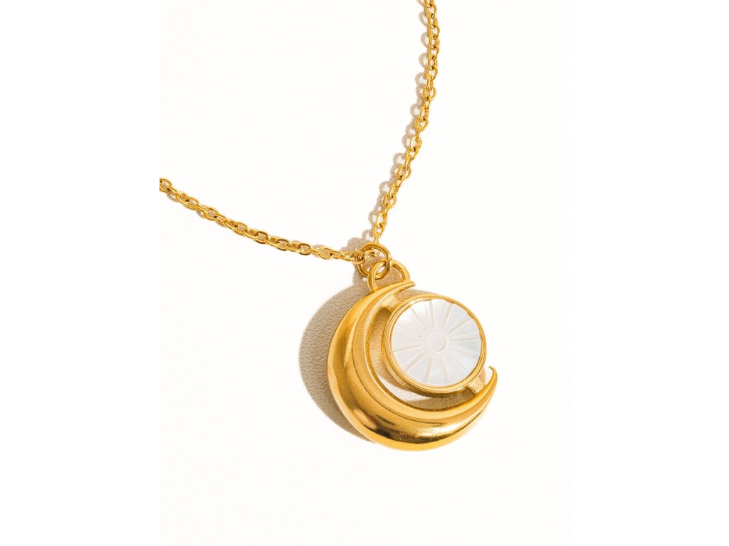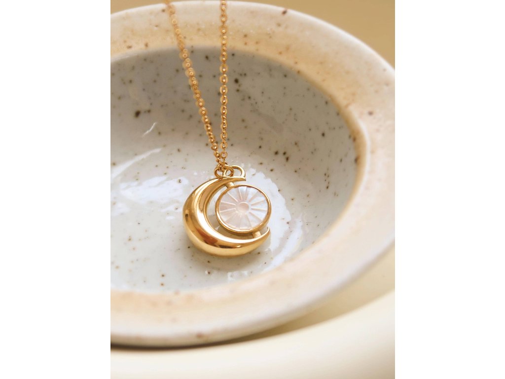 Měsíc, který objímá perleť – jemný talisman klidu a světla.