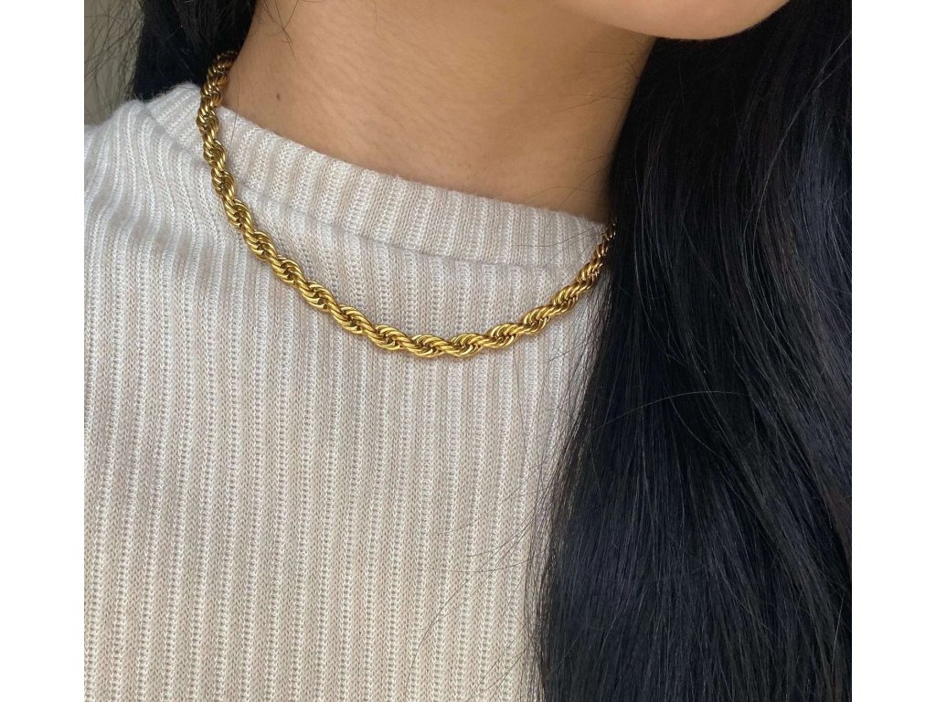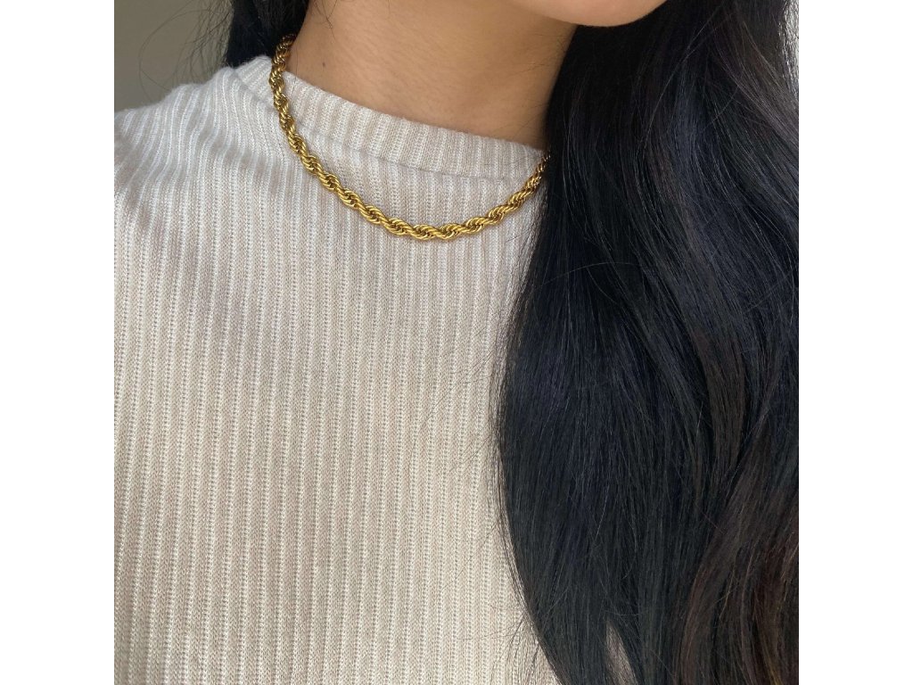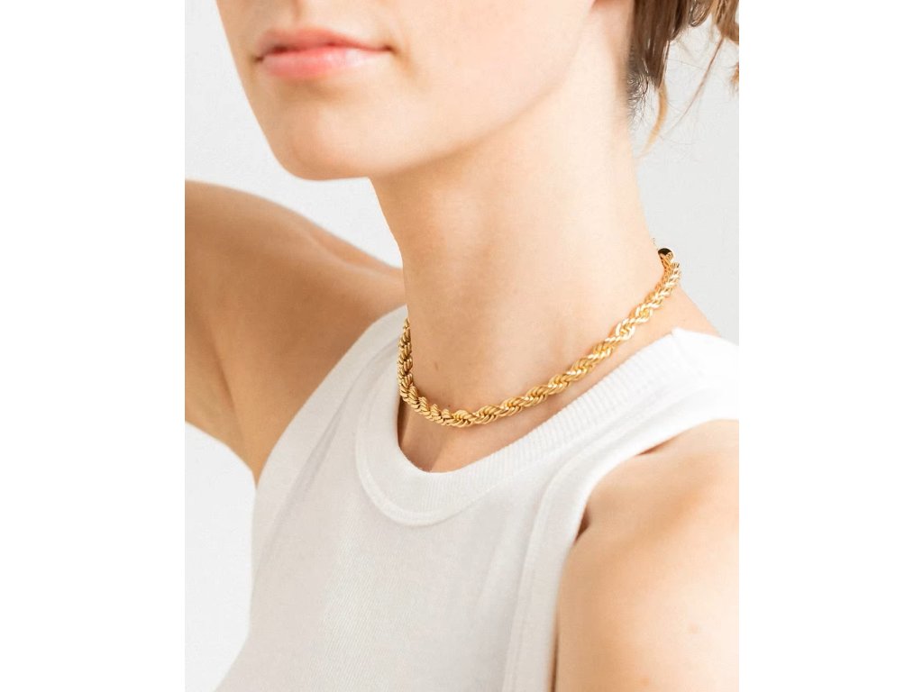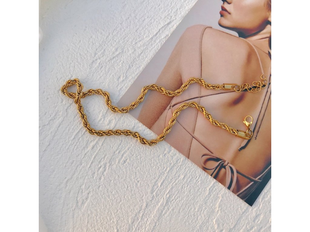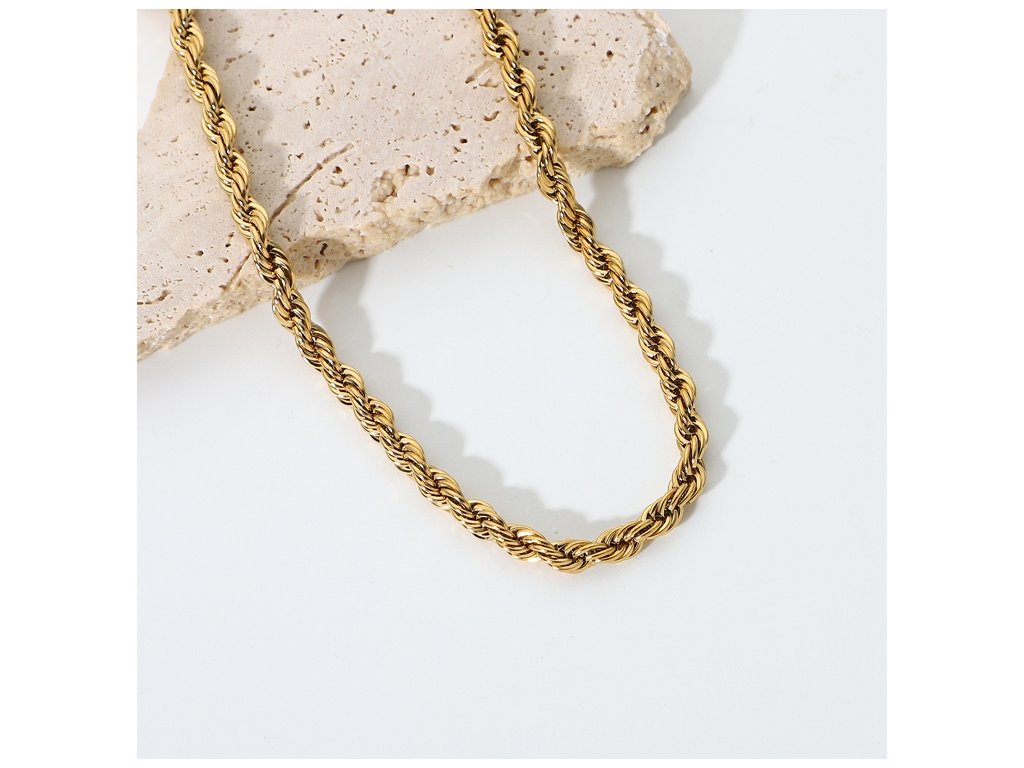 Jeho točená struktura vytváří nádherný odlesk při každém pohybu. Skvěle vynikne samostatně, ale můžeš ho kombinovat i s jemnějšími řetízky pro elegantní vrstvení.