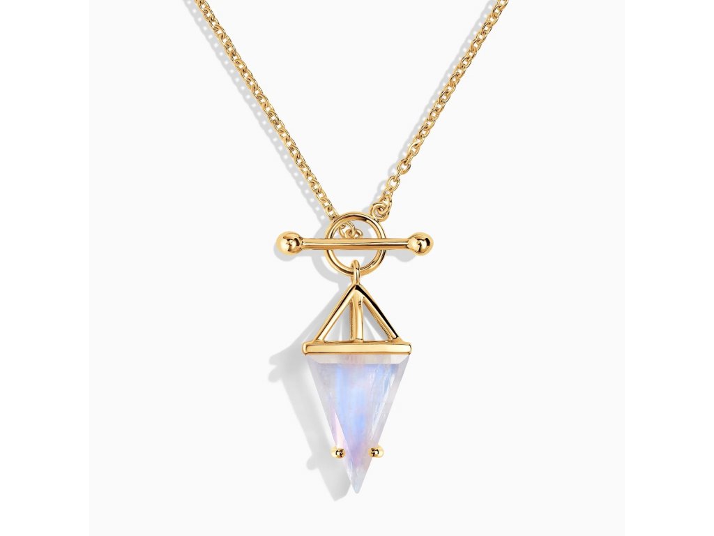 - Luxusní náhrdelník ze 14k žlutého zlata vermeil T-Lock obohacený měsíčním duhovým drahokamem Moonstonem AA+. Originální design náhrdelníku, kvalitní zpracování a materiál, ručně dohotovené.