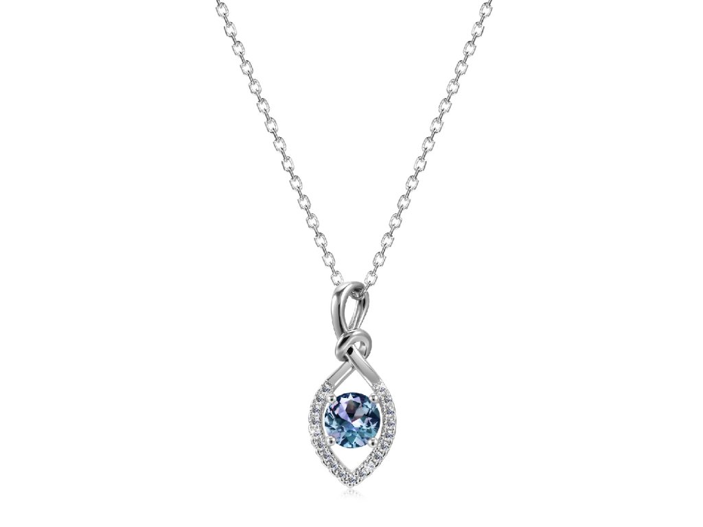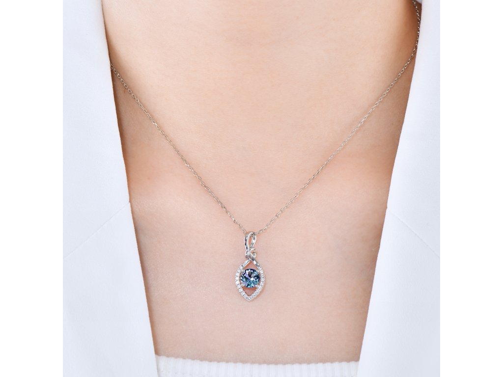 - Luxusní stříbrný náhrdelník pozlacený 18k bílým zlatem s Alexandritem a zirkony. Originální design náhrdelníku, kvalitní zpracování a materiál, ručně dohotovené.