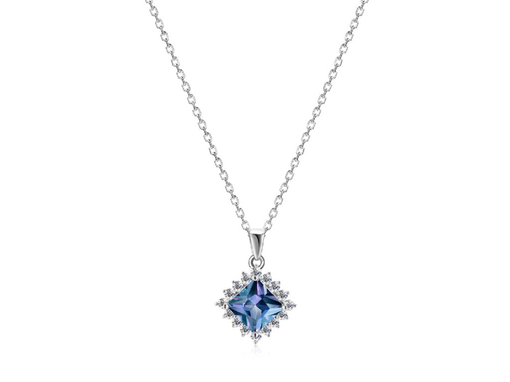 - Luxusní stříbrný náhrdelník pozlacený 18k bílým zlatem s Alexandritem a zirkony. Originální design náhrdelníku, kvalitní zpracování a materiál, ručně dohotovené.