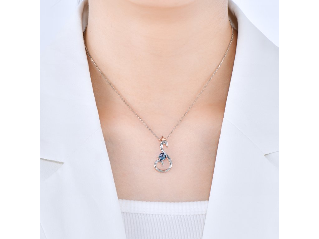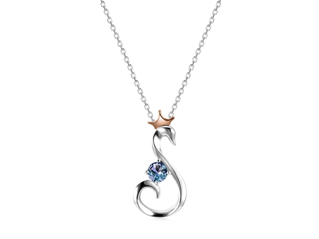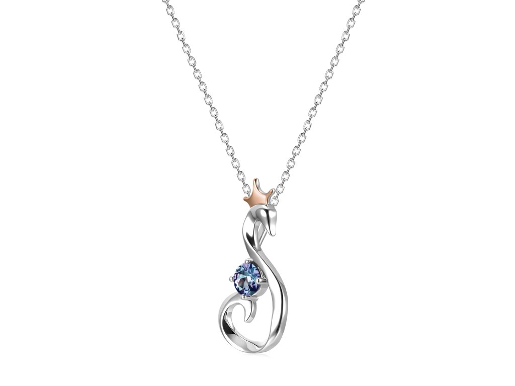 - Luxusní stříbrný náhrdelník pozlacený 18k bílým a růžovým zlatem s Alexandritem. Originální design náhrdelníku, kvalitní zpracování a materiál, ručně dohotovené.
