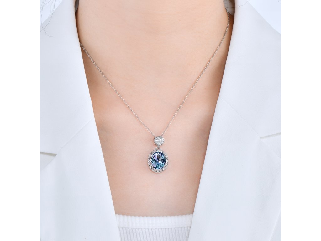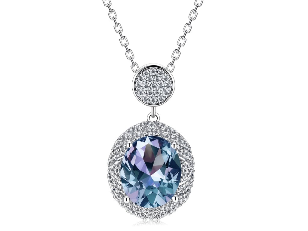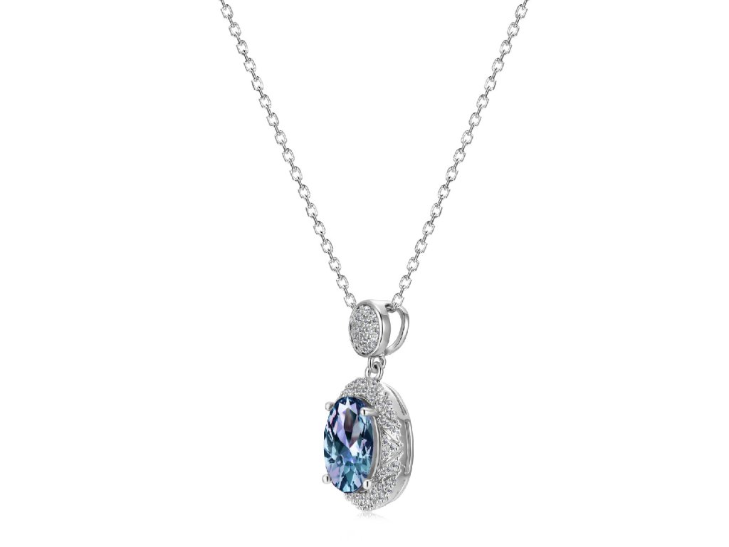 - Luxusní stříbrný náhrdelník pozlacený 18k bílým zlatem s Alexandritem a zirkony. Originální design náhrdelníku, kvalitní zpracování a materiál, ručně dohotovené.