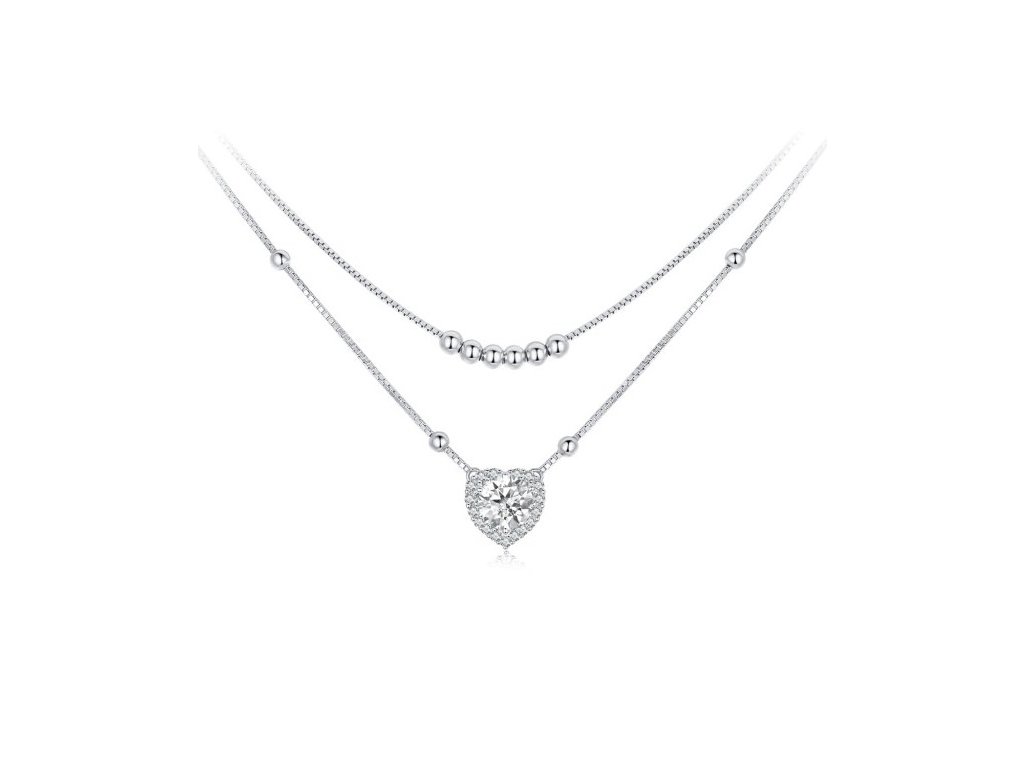 Elenys pozlacený dvojitý náhrdelník srdce s drahokamem moissanitem