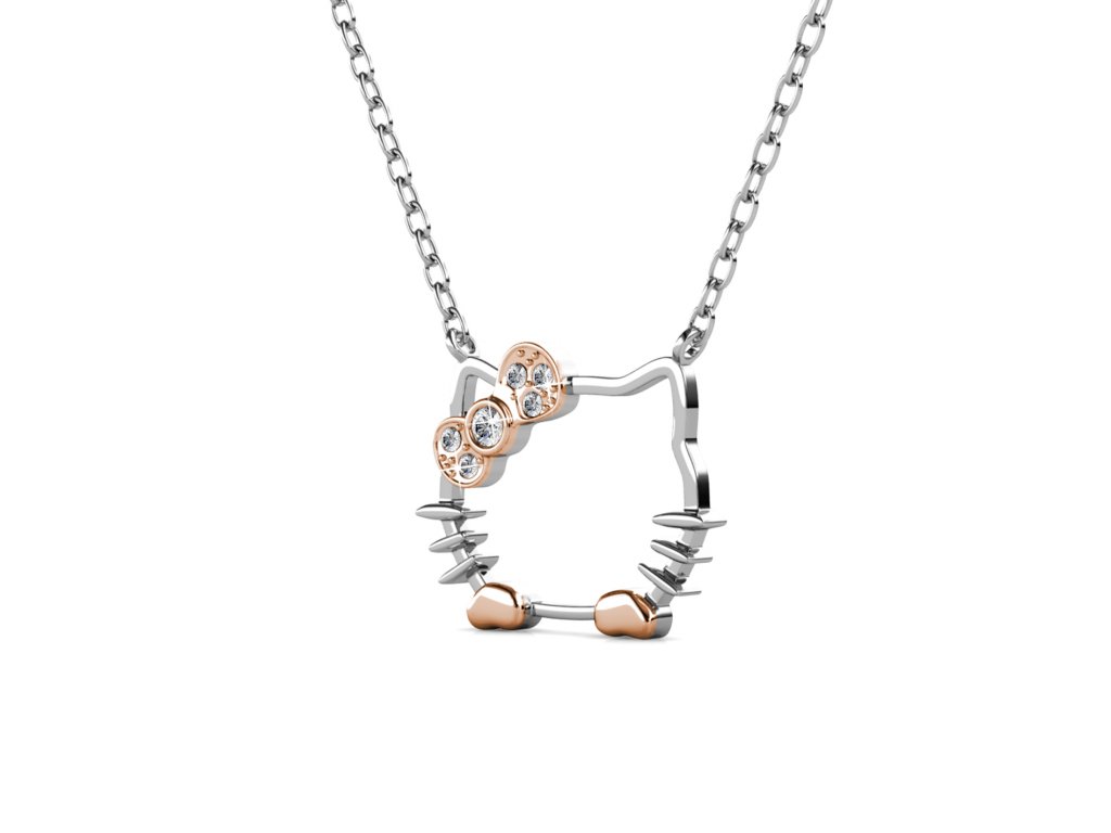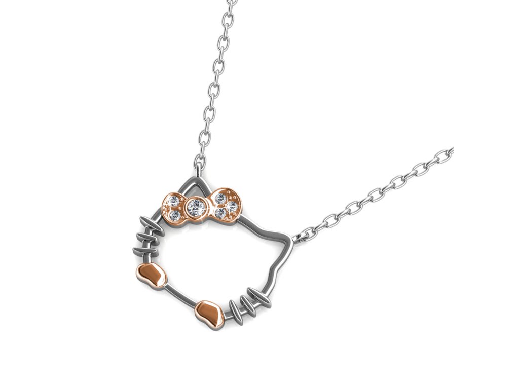 - Náhrdelník zlacený 18K bílým zlatem a 18K růžovým zlatem s přívěskem ve tvaru kočičky, který je zdoben drahokamy moissanity. Originální design náhrdelníku, kvalitní zpracování a materiál, ručně dohotovené.