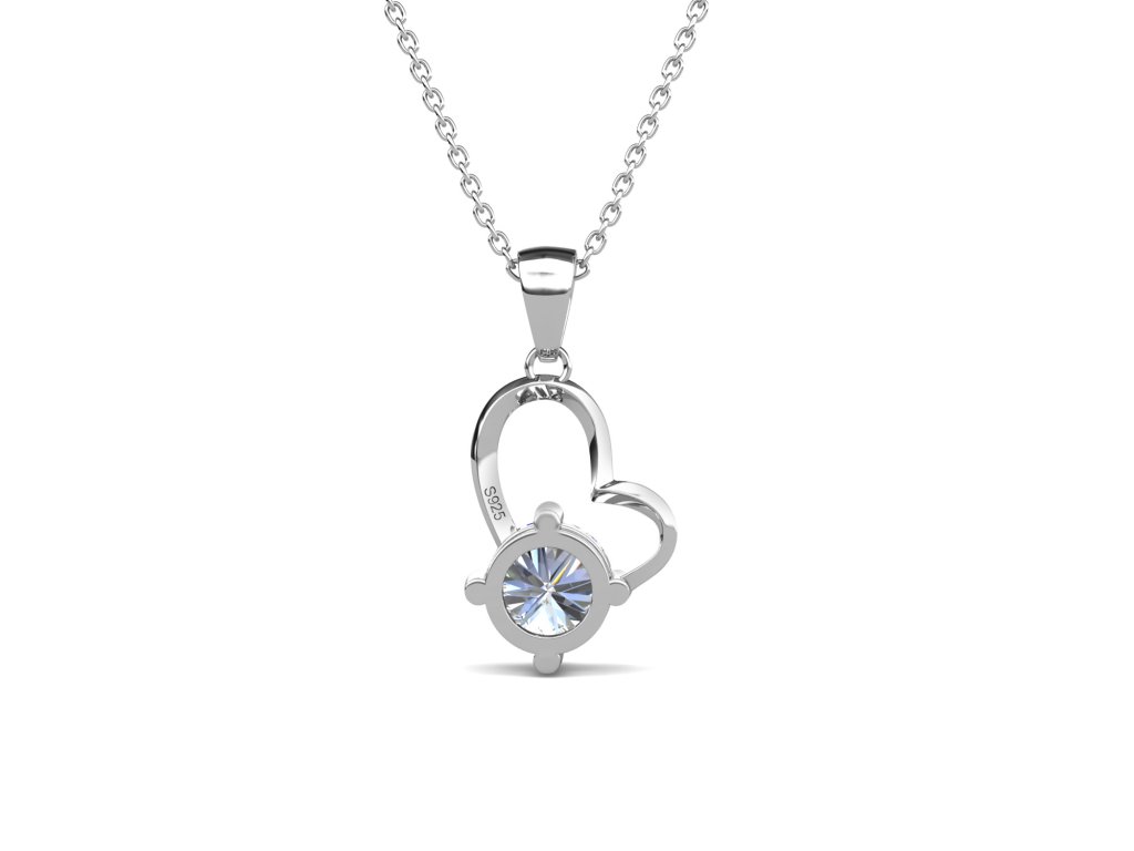 - Stříbrný náhrdelník pozlacený 18k bílým zlatem s přívěskem ve tvaru Srdce, který je zdoben drahokamem moissanitem. Originální design náhrdelníku, kvalitní zpracování a materiál, ručně dohotovené.
