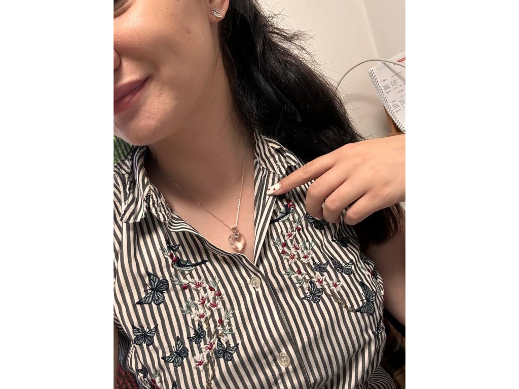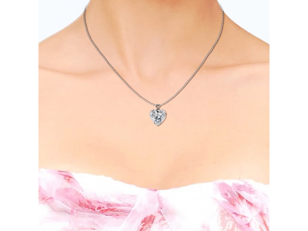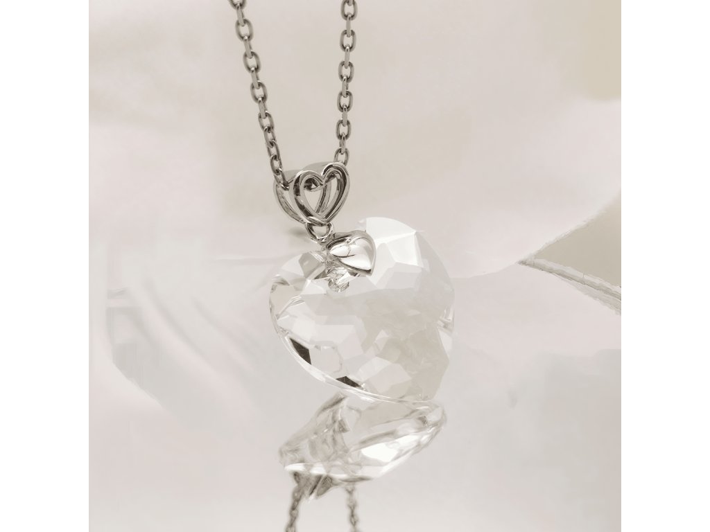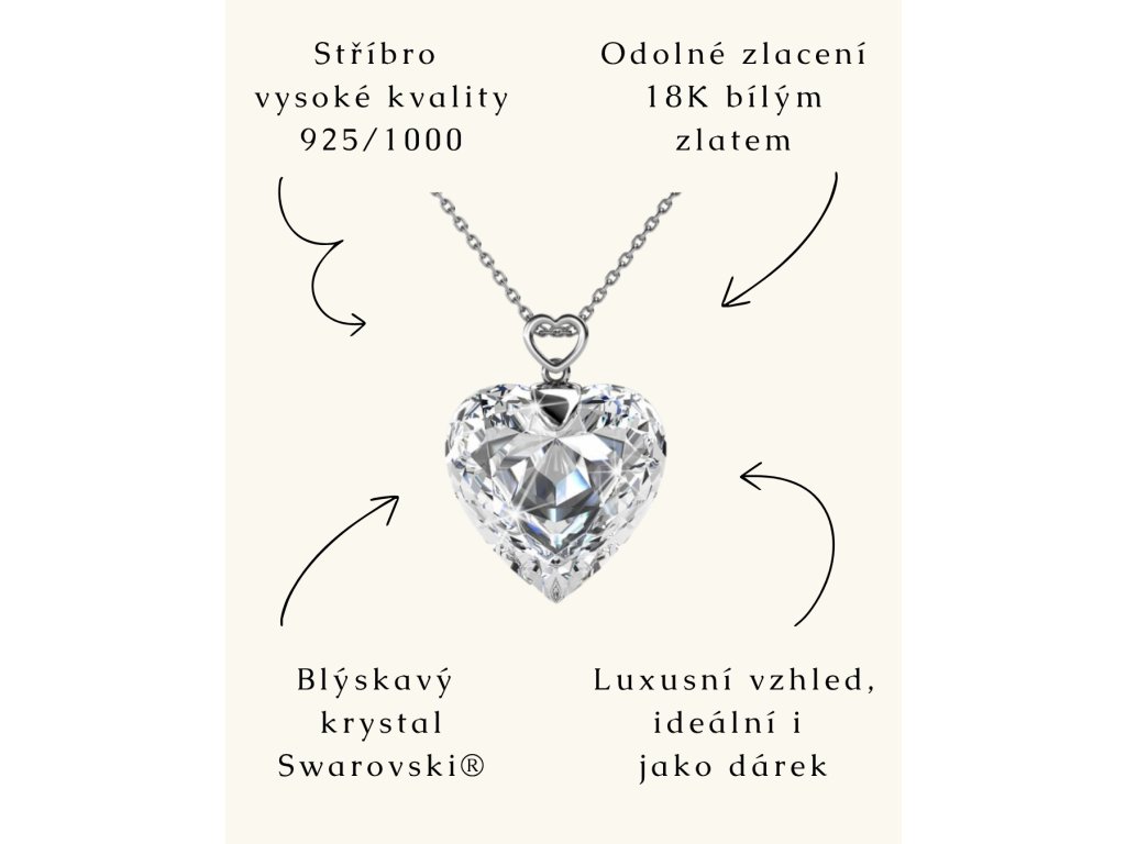 - Luxusní stříbrný náhrdelník pozlacený 18k bílým zlatem s krystalem Swarovski ve tvaru srdce. Originální design náhrdelníku, kvalitní zpracování a materiál, ručně dohotovené.