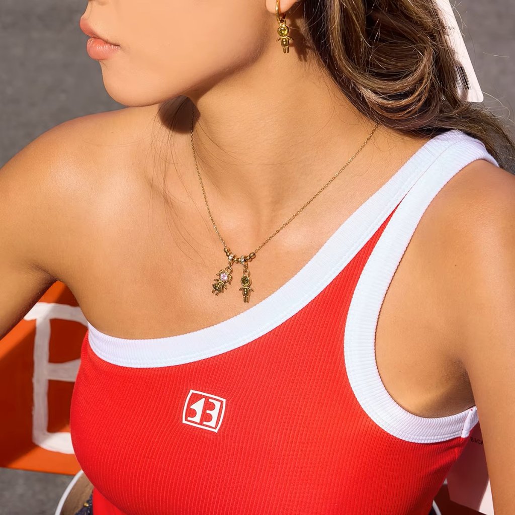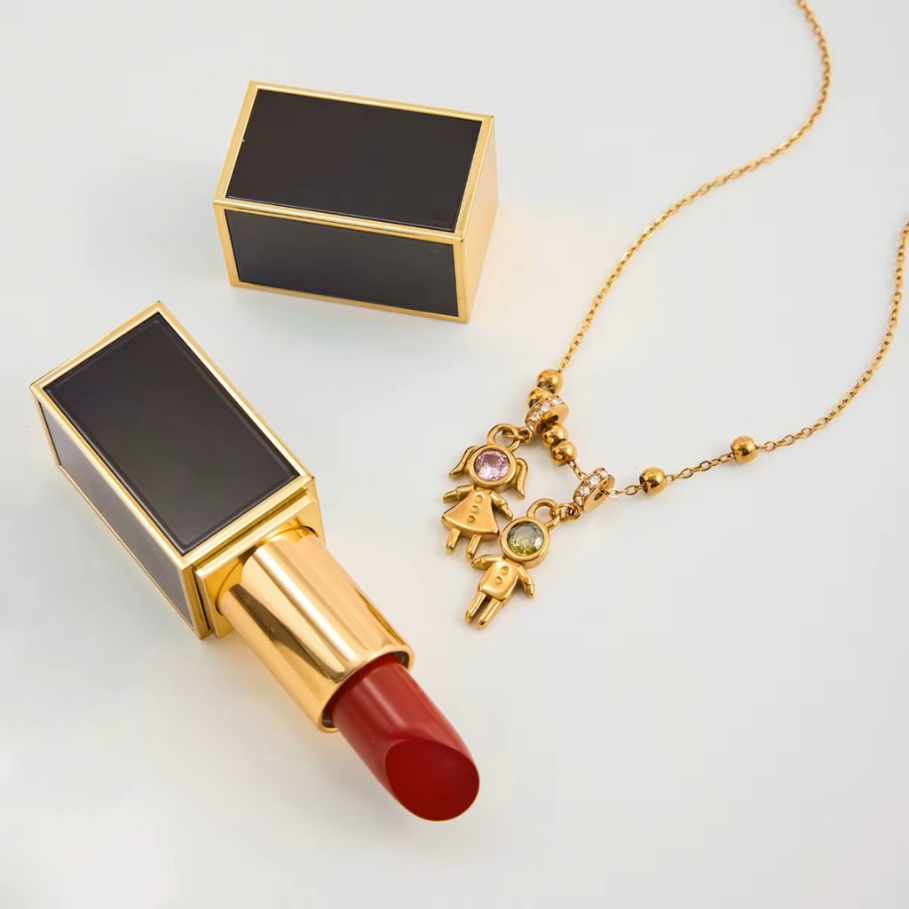 Délka řetízku 42 cm + 5 cm umožňuje ideální usazení kolem klíční kosti. Přívěsky mají výšku 2,2 cm. Náhrdelník je voděodolný a hypoalergenní.