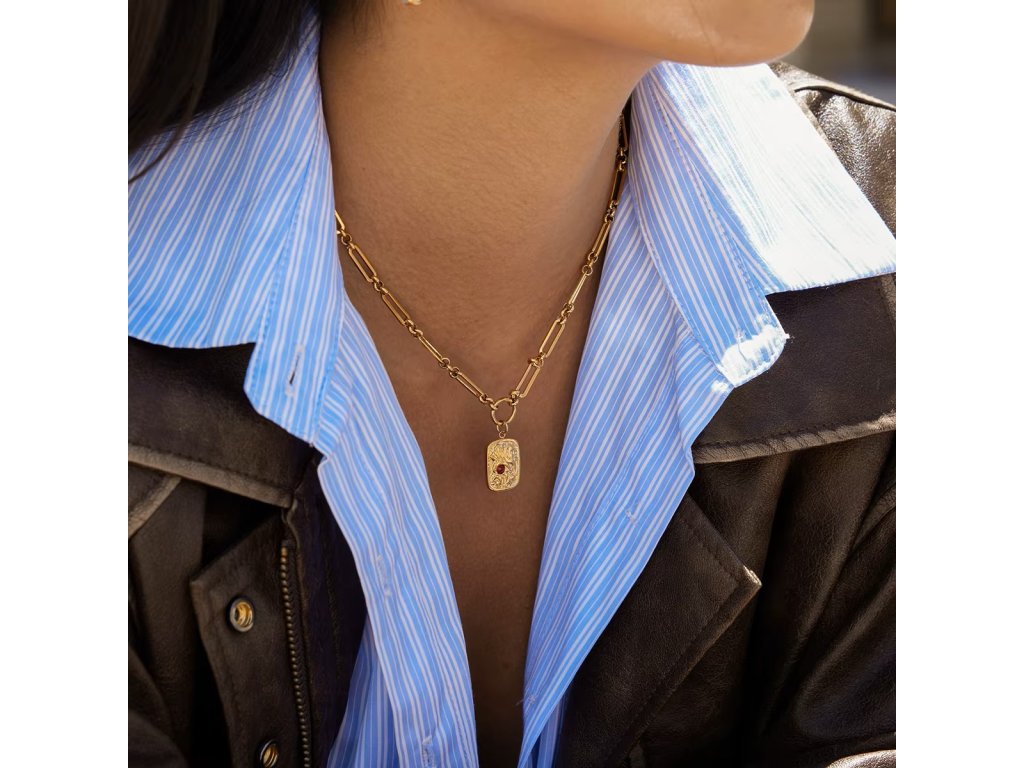 Zirkon jemně zachycuje světlo a vytváří decentní třpyt, který nepůsobí okázale. Díky kombinaci hladkého řetízku a plastického detailu náhrdelník vynikne samostatně i jako součást vrstveného stylingu.