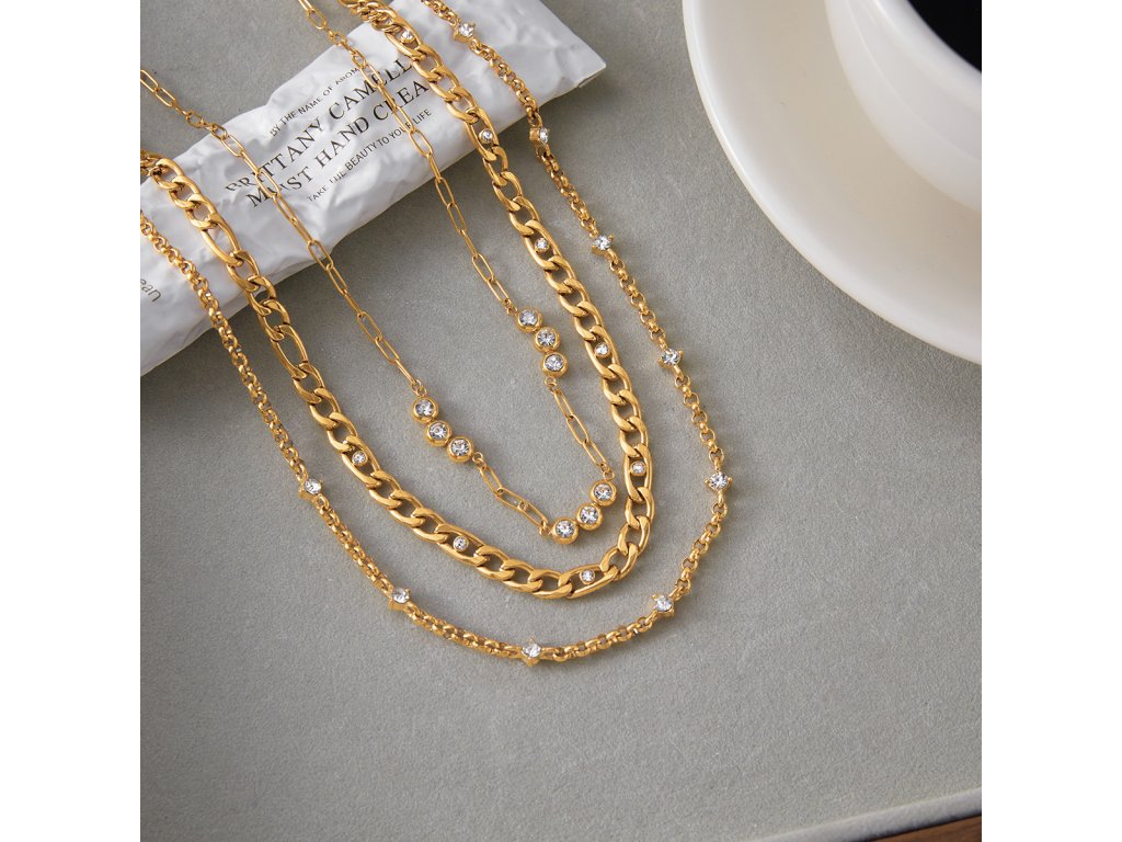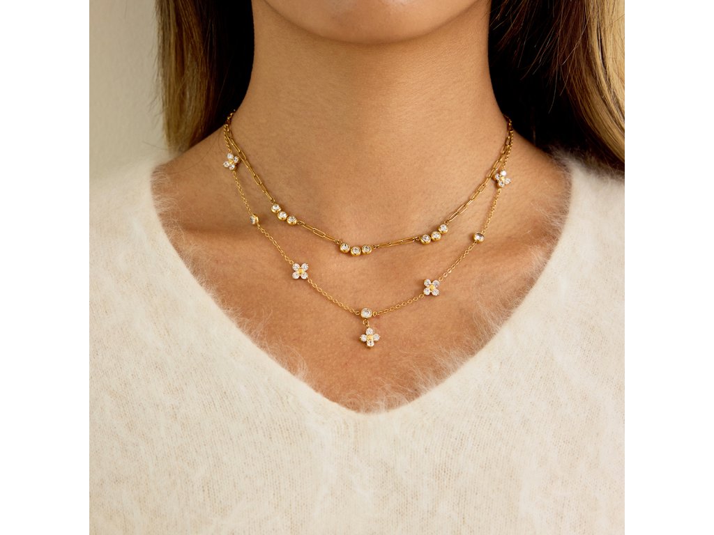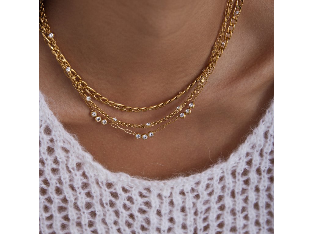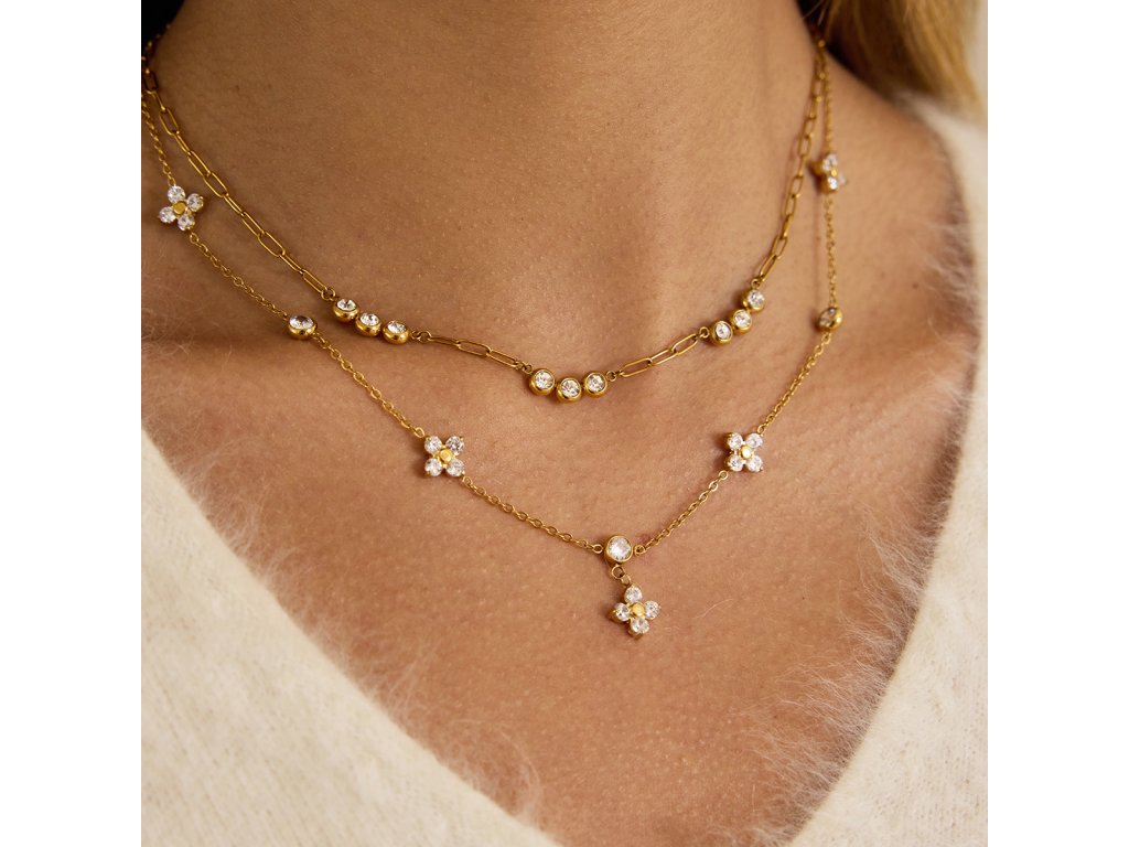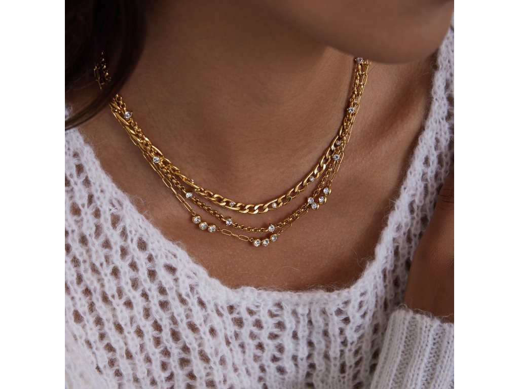 Jemná řetízková struktura vytváří subtilní, ale výrazný efekt. Zirkony dodávají náhrdelníku luxusní vzhled, aniž by působil těžce – ideální pro každodenní nošení.