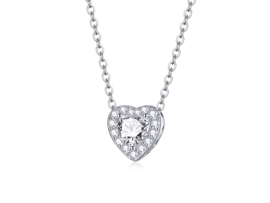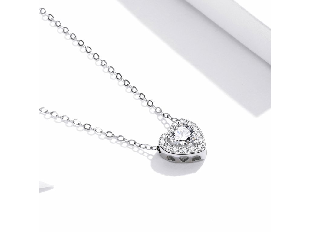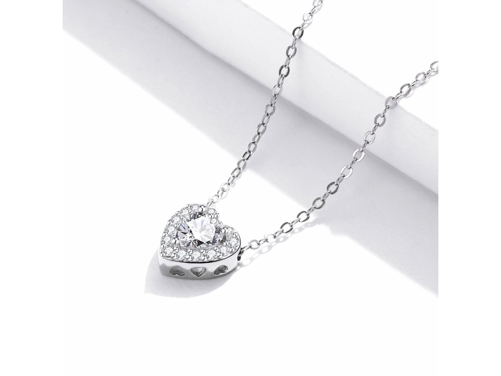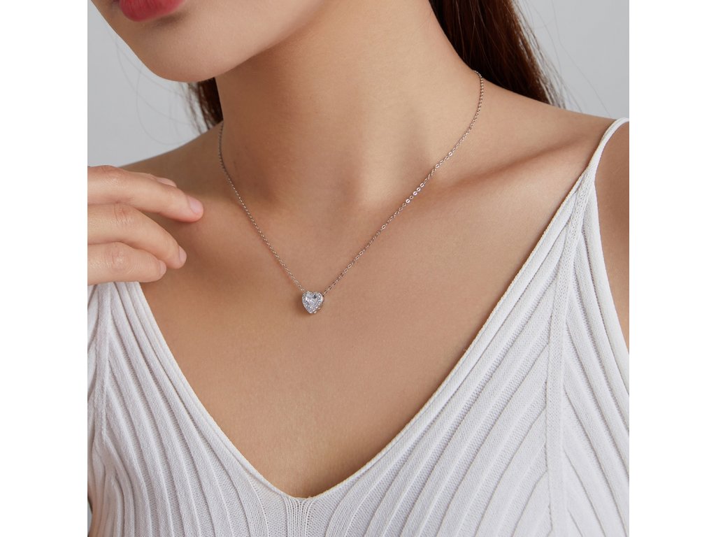 - Stříbrný nastavitelný náhrdelník ve tvaru milovaného srdce zdobeného čirými třpytivými zirkony. Střed přívěsku tvoří čirý broušený zirkon ve tvaru srdce. Přívěsek je také obohacen ručně vyřezávanými srdíčky po stranách. Kvalitní stříbro zaručí dokonalý lesk šperku a vy zazáříte za každých okolností.