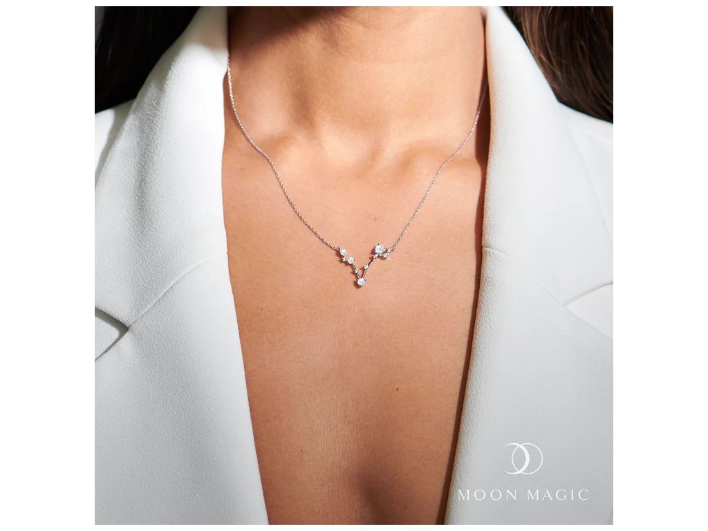 - Objevte kouzlo hvězd s naším elegantním náhrdelníkem ve znamení Ryby, inspirovaným souhvězdím tohoto mystického znamení. Náhrdelník je jemně zdobený čirými zirkony, které reprezentují hvězdy, a doplněný přírodním měsíčním drahokamem Moonstonem, symbolizujícím intuici a klidnou energii. Tento šperk je nejen krásným doplňkem, ale i osobním amuletem, který zdůrazní vaši jedinečnost a propojení s vesmírem. Ideální jako dárek pro někoho narozeného ve znamení Ryby nebo pro každého, kdo miluje spojení elegance a hvězdné symboliky.