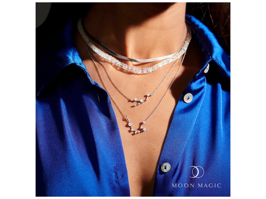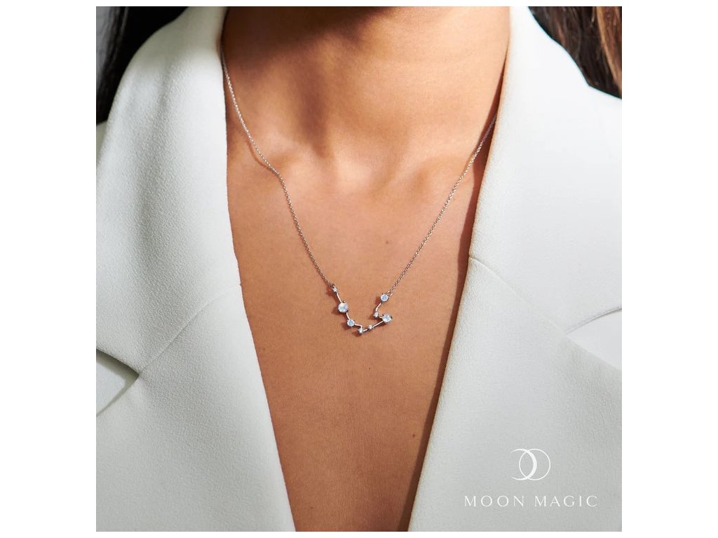 - Objevte kouzlo hvězd s naším elegantním náhrdelníkem ve znamení Vodnář, inspirovaným souhvězdím tohoto mystického znamení. Náhrdelník je jemně zdobený čirými zirkony, které reprezentují hvězdy, a doplněný přírodním měsíčním drahokamem Moonstonem, symbolizujícím intuici a klidnou energii. Tento šperk je nejen krásným doplňkem, ale i osobním amuletem, který zdůrazní vaši jedinečnost a propojení s vesmírem. Ideální jako dárek pro někoho narozeného ve znamení Vodnář nebo pro každého, kdo miluje spojení elegance a hvězdné symboliky.