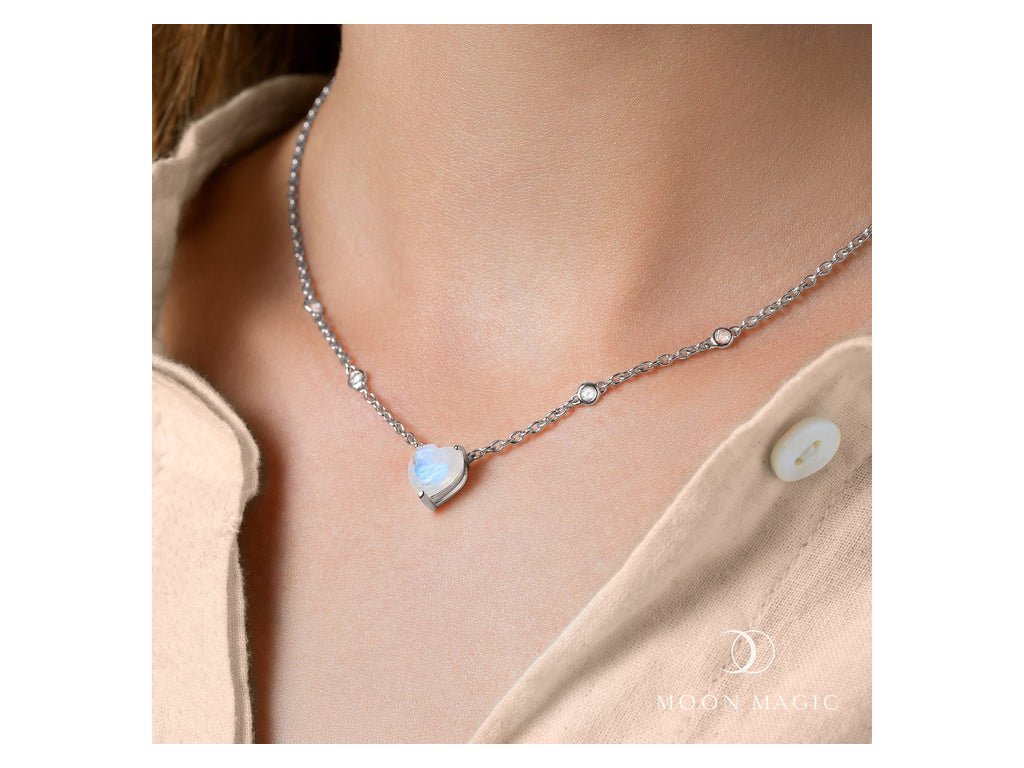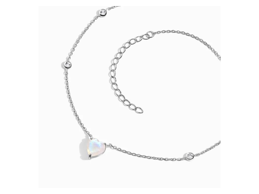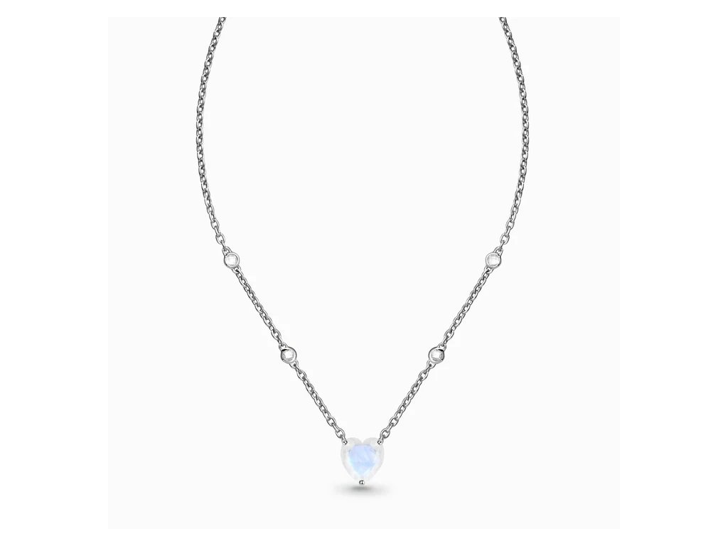 Udělejte prohlášení lásky s tímto jednoduchým úžasem. Náš autentický náhrdelník s názvem "Blázen do tebe" s měsíčním drahokamem dodává eleganci rhodiovaným stříbrem společně se čtyřmi přírodními třpytivými body bílého topazu podél řetízku, což vám vždy připomene, abyste našli svůj vnitřní klid.