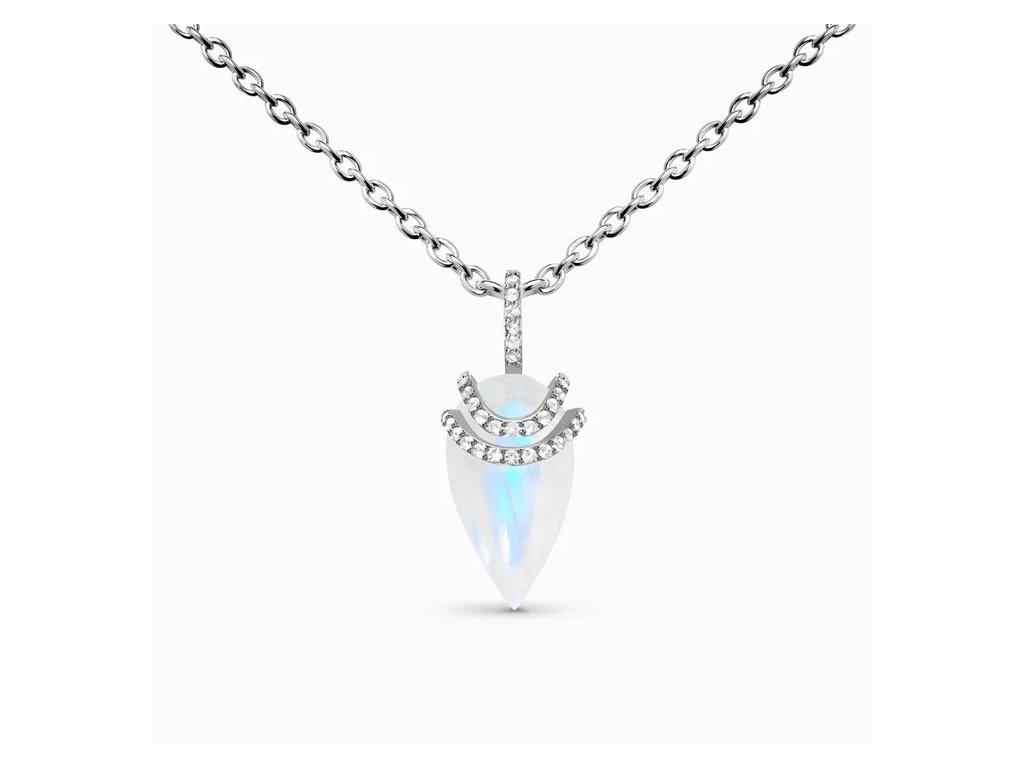 - Luxusní stříbrný rhodiovaný náhrdelník Bohyně obohacený měsíčním duhovým drahokamem Moonstonem a čirými třpytivými drahokamy topazy. Originální design náhrdelníku, kvalitní zpracování a materiál, ručně dohotovené.