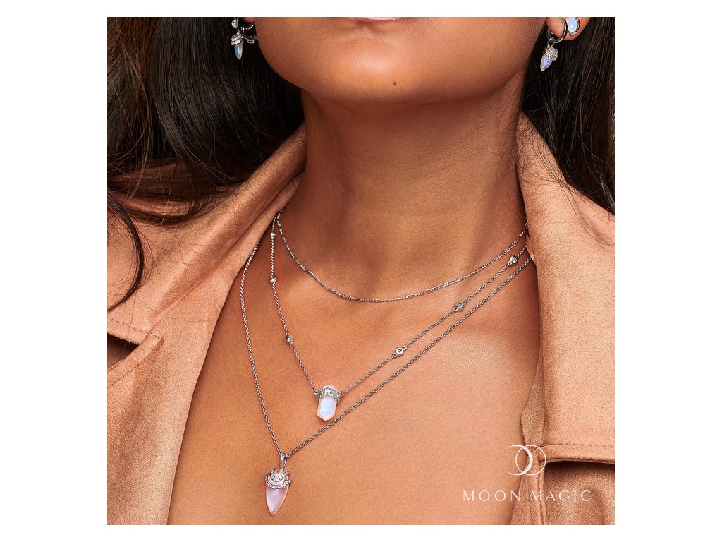 Spojte se s božstvem uvnitř s naším náhrdelníkem "Bohyně" z měsíčního kamene. Se svým blyštivým pravým měsíčním kamenem a zvlněnými křivkami brilantního přírodního bílého topazu odráží náhrdelník nenucenou krásu, která vychází zevnitř.