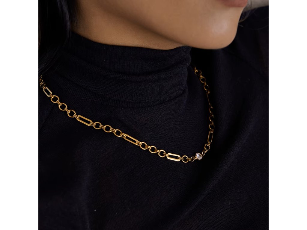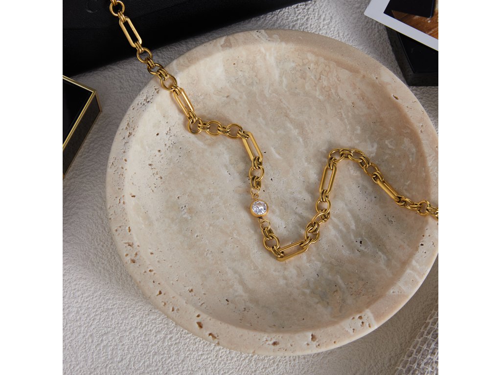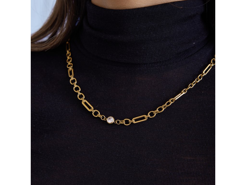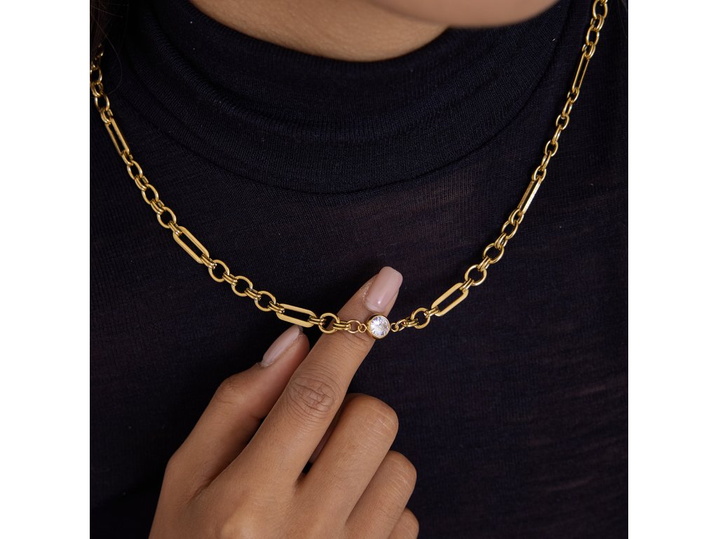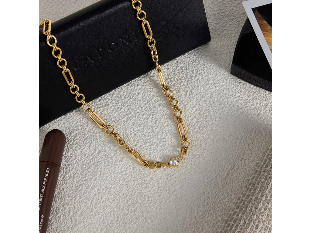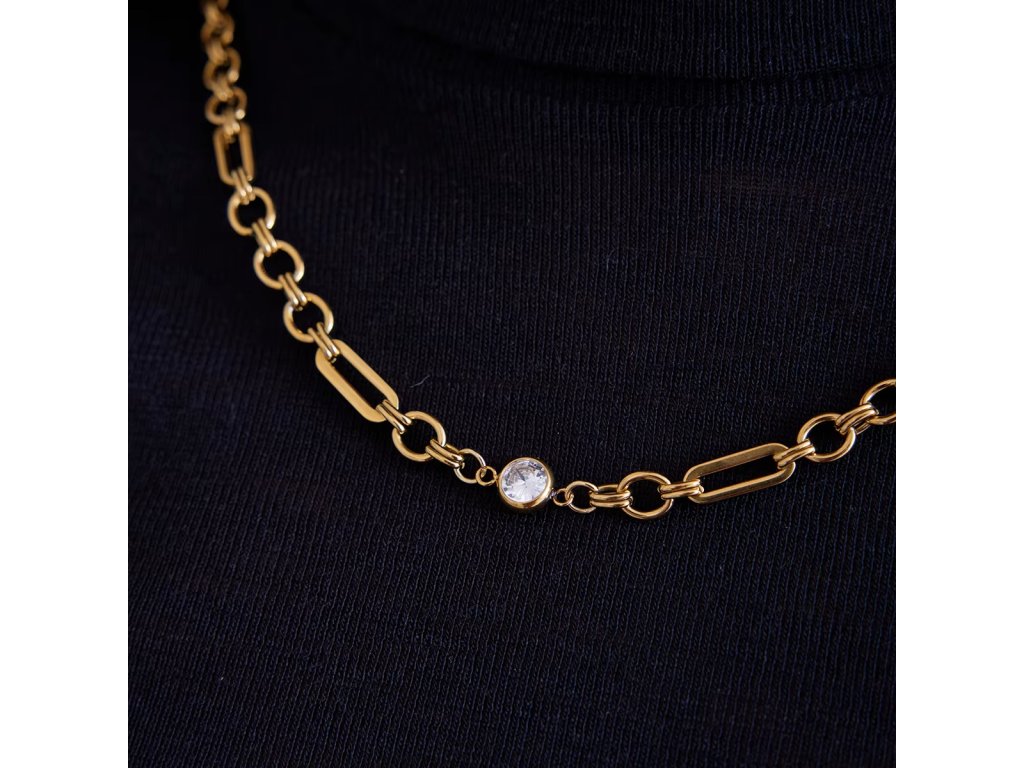 Unity Chain – elegantní řetízkový náhrdelník s jemným středovým zirkonem, který propojuje harmonii, styl a světelný detail v nadčasové linii.