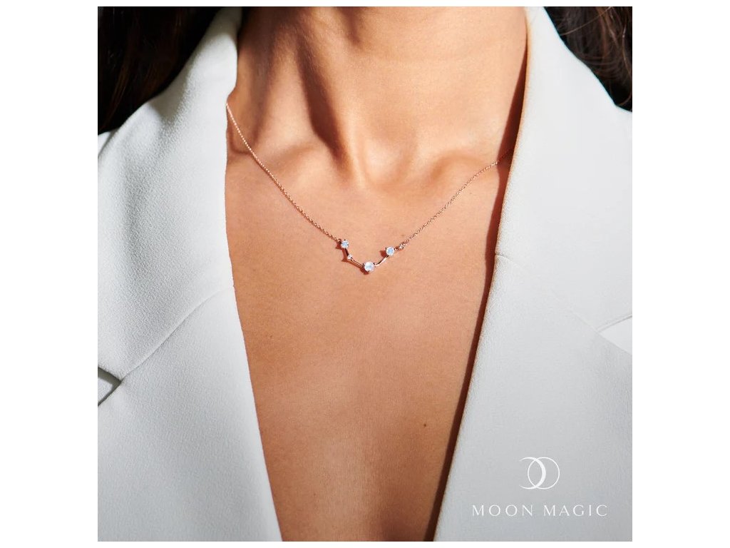 - Objevte kouzlo hvězd s naším elegantním náhrdelníkem ve znamení Beran, inspirovaným souhvězdím tohoto mystického znamení. Náhrdelník je jemně zdobený čirými zirkony, které reprezentují hvězdy, a doplněný přírodním měsíčním drahokamem Moonstonem, symbolizujícím intuici a klidnou energii. Tento šperk je nejen krásným doplňkem, ale i osobním amuletem, který zdůrazní vaši jedinečnost a propojení s vesmírem. Ideální jako dárek pro někoho narozeného ve znamení Beran nebo pro každého, kdo miluje spojení elegance a hvězdné symboliky.