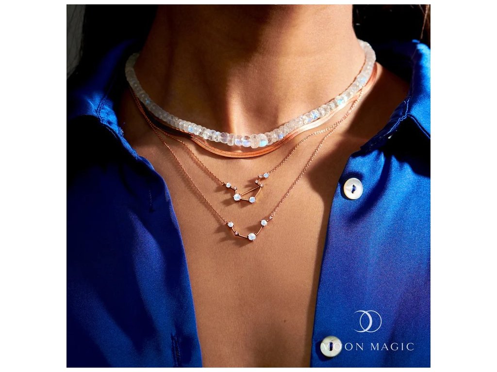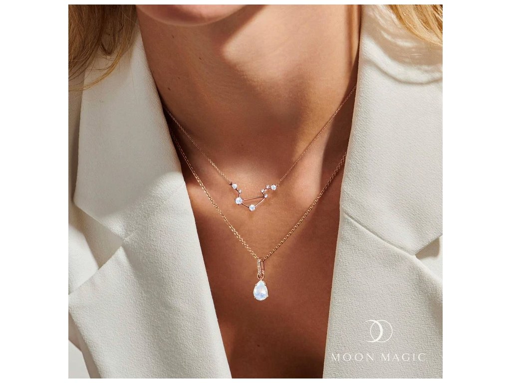 - Objevte kouzlo hvězd s naším elegantním náhrdelníkem ve znamení Váhy, inspirovaným souhvězdím tohoto mystického znamení. Náhrdelník je jemně zdobený čirými zirkony, které reprezentují hvězdy, a doplněný přírodním měsíčním drahokamem Moonstonem, symbolizujícím intuici a klidnou energii. Tento šperk je nejen krásným doplňkem, ale i osobním amuletem, který zdůrazní vaši jedinečnost a propojení s vesmírem. Ideální jako dárek pro někoho narozeného ve znamení Váhy nebo pro každého, kdo miluje spojení elegance a hvězdné symboliky.