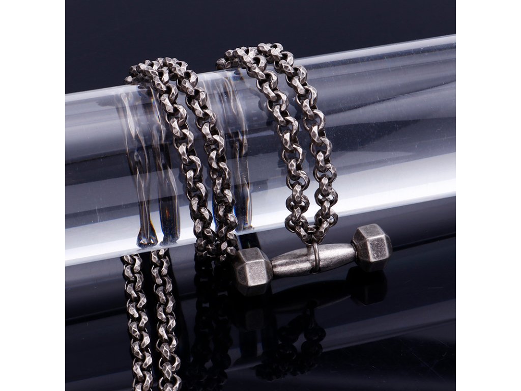 - Pánský náhrdelník s řetízkem z chirurgické oceli v designu činky. Originální design náhrdelníku, kvalitní zpracování a materiál.