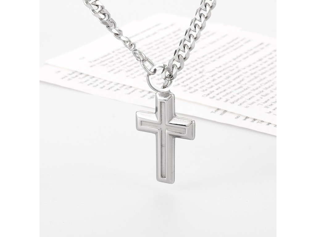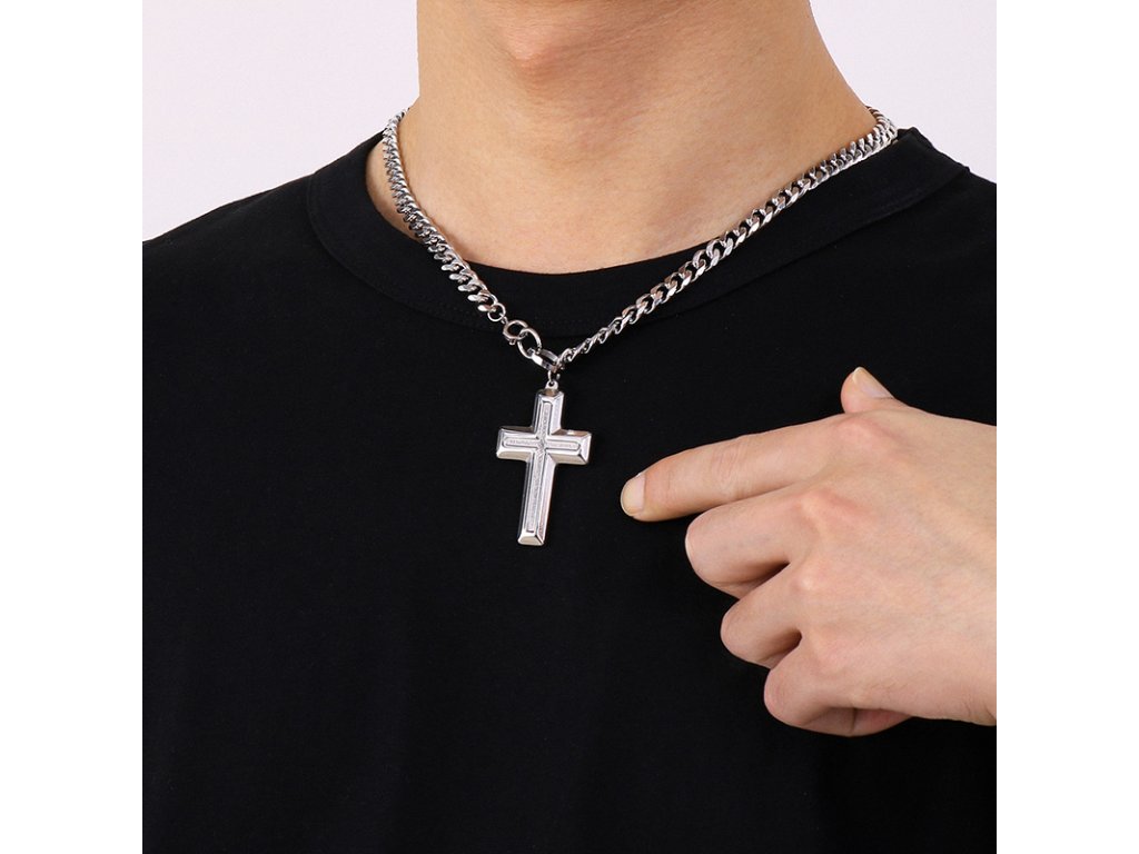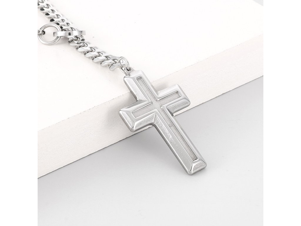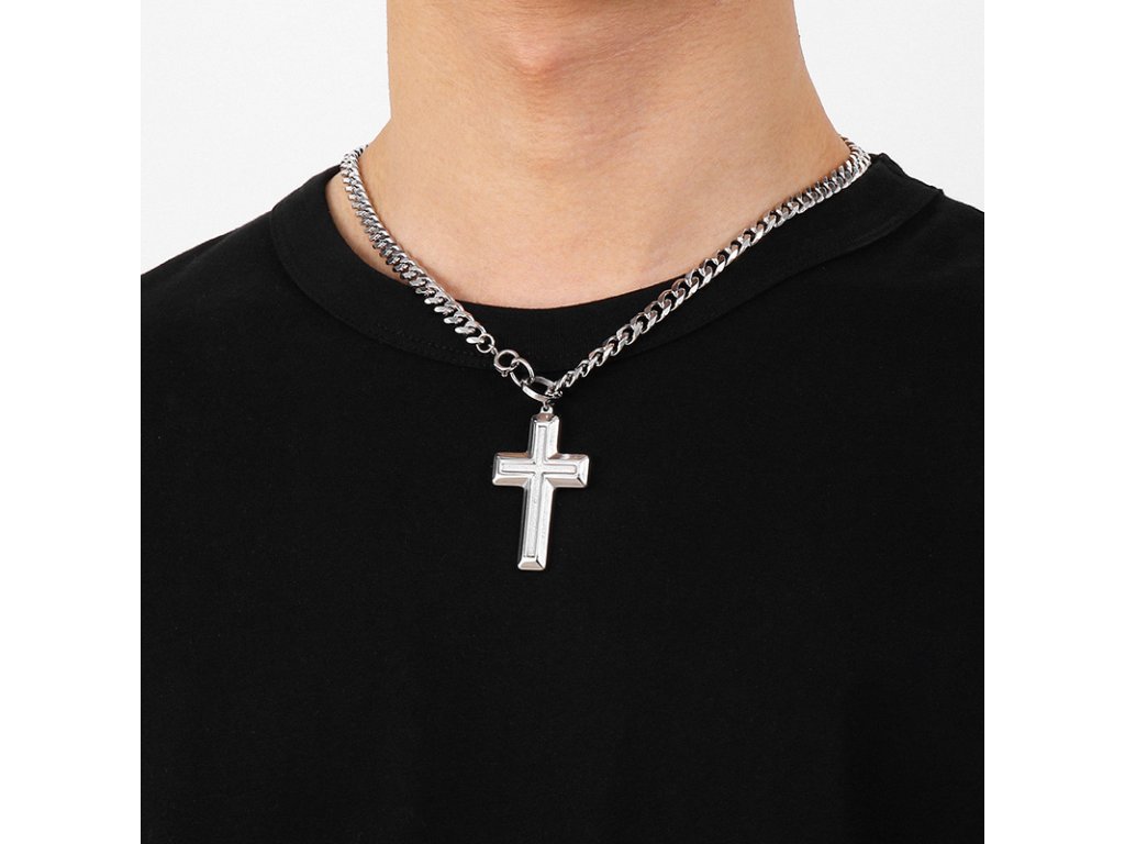 - Pánský náhrdelník s řetízkem z chirurgické oceli v designu kříže. Originální design náhrdelníku, kvalitní zpracování a materiál.