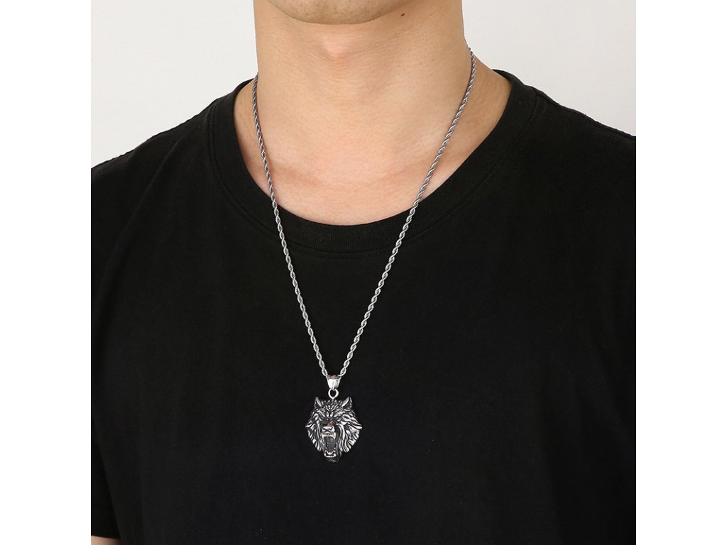 - Pánský náhrdelník s řetízkem z chirurgické oceli v designu vlka. Originální design náhrdelníku, kvalitní zpracování a materiál.