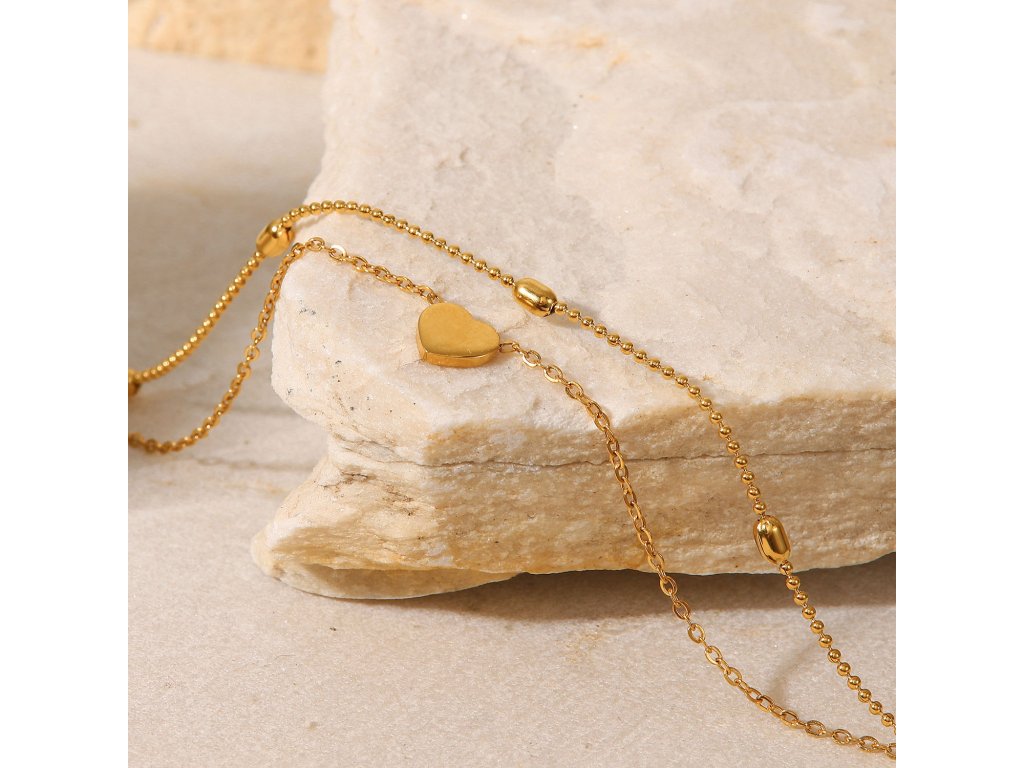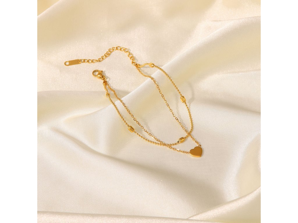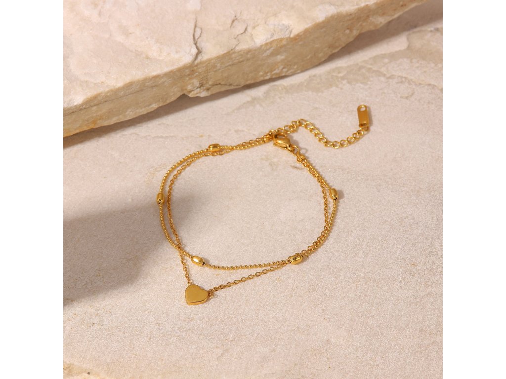 ELENYS Amora je jemný náramek na nohu navržený jako klidný symbol blízkosti a citu. Dvojitá linie působí vyváženě a lehce, zatímco drobné srdce přidává osobní význam bez okázalosti.