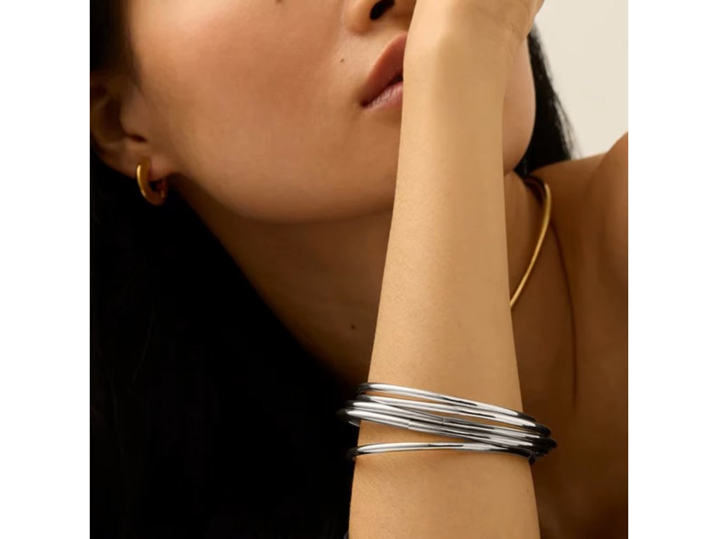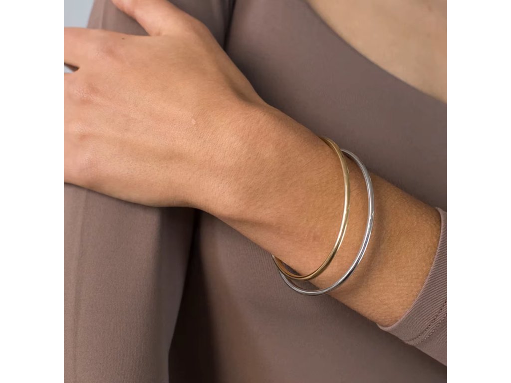 ELENYS BANGLE STEEL přináší kolekci minimalistických náramků vyrobených z certifikované chirurgické oceli 304/316L. Elegantní lesk a nadčasový vzhled z nich dělají ideální doplněk pro každý den.