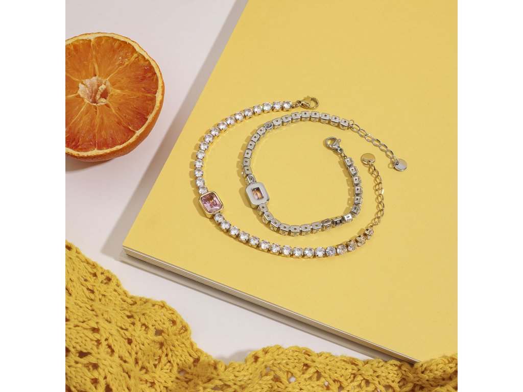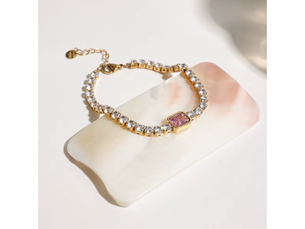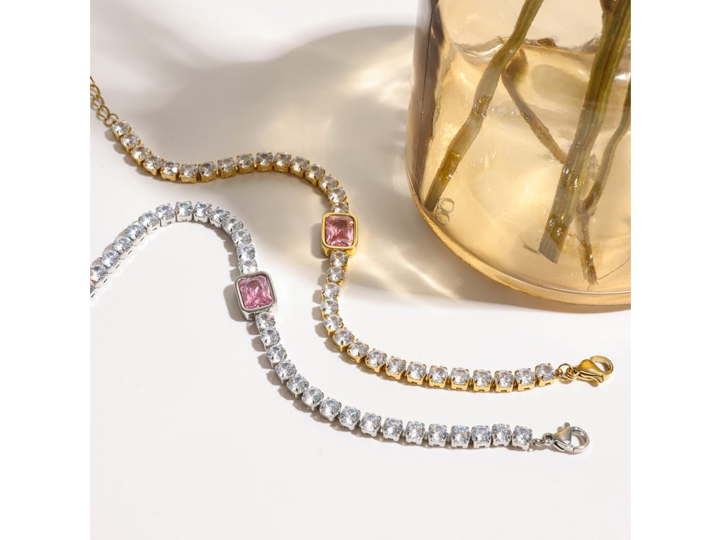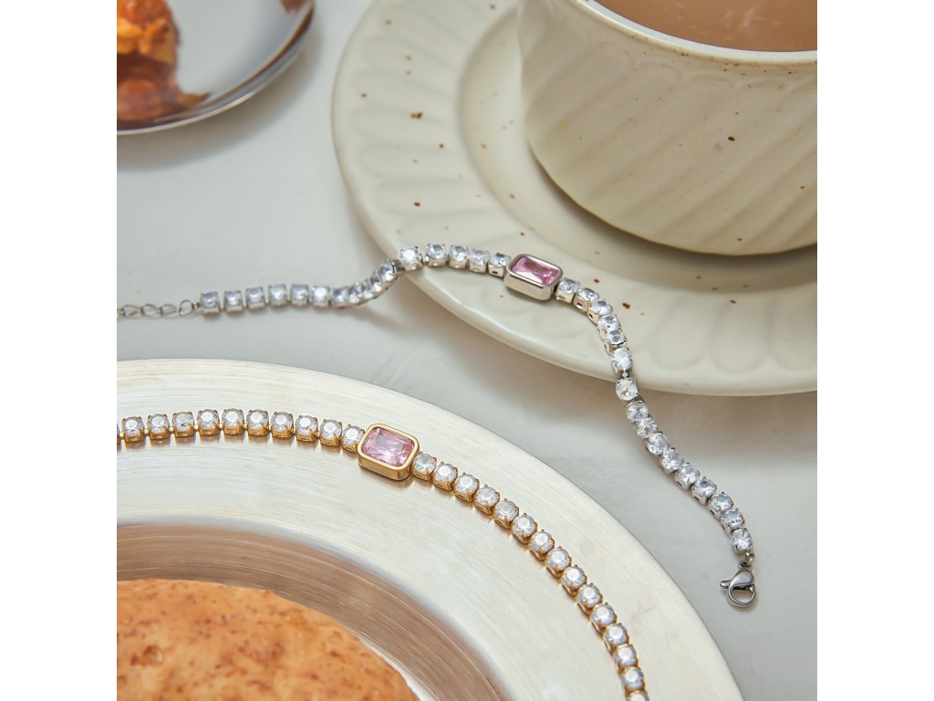Náramek se zirkony a růžovým krystalem – jemná záře s romantickým akcentem.