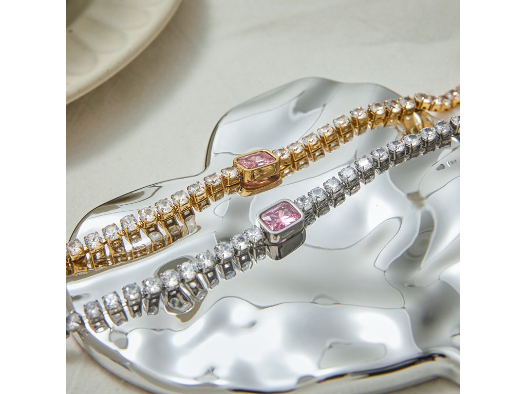 Díky délce 17 cm s prodloužením o 3 cm si snadno přizpůsobíte velikost, zatímco šířka růžového krystalu 8,2 mm dodává šperku jemný, ale nepřehlédnutelný akcent. Náramek je voděodolný, hypoalergenní a vhodný i pro citlivou pokožku.