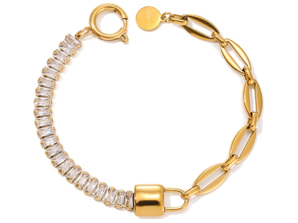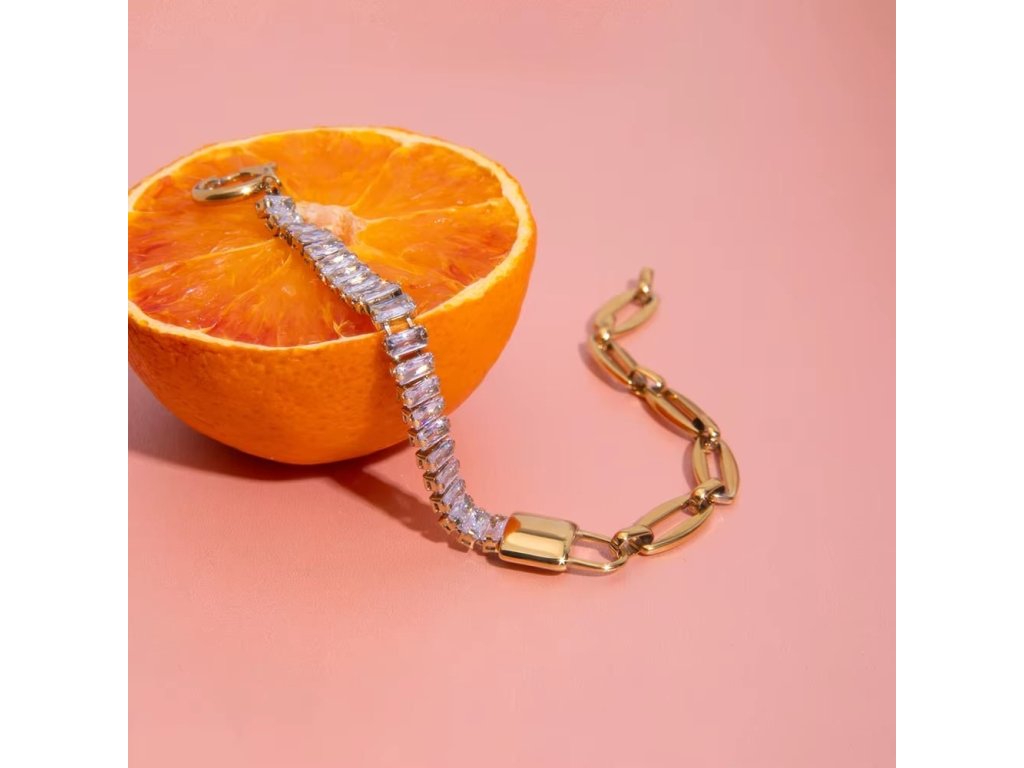 Náramek s kombinací článků a zirkonů – moderní elegance v zářivém lesku.
