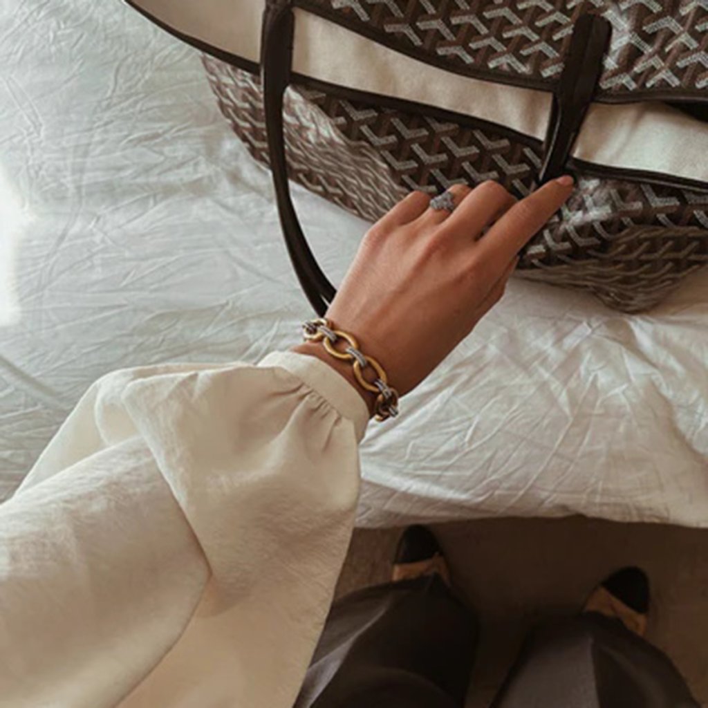 ELENYS Dual Essence je náramek, který okamžitě dodá outfitu charakter. Zlatý lesk se potkává s ocelovým detailem a vzniká výrazný, moderní akcent — bez zbytečné okázalosti.