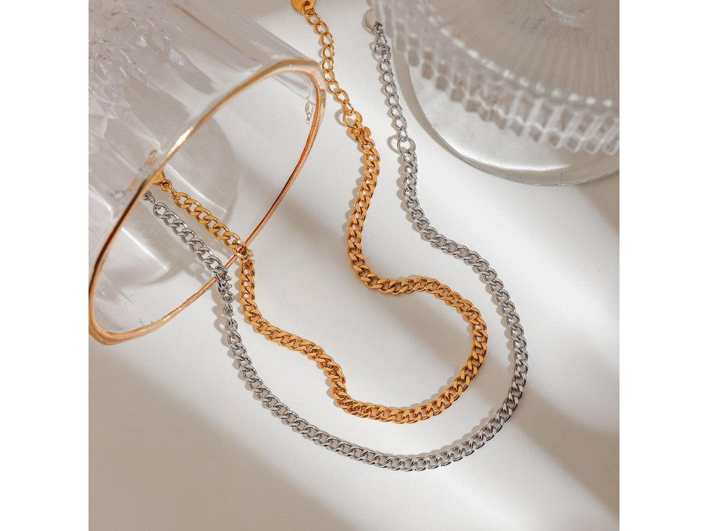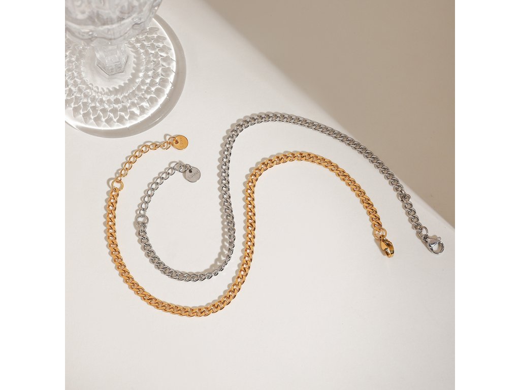 ELENYS Dualis Set je sada dvou náramků na nohu, která pracuje s kontrastem – 18k pozlacený řetízek doplňuje čistá prémiová chirurgická ocel bez povrchové úpravy. Každý má vlastní charakter, dohromady ale tvoří harmonický celek.