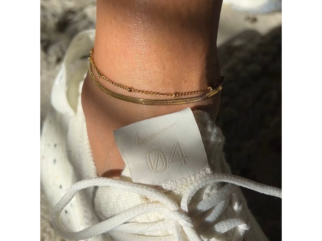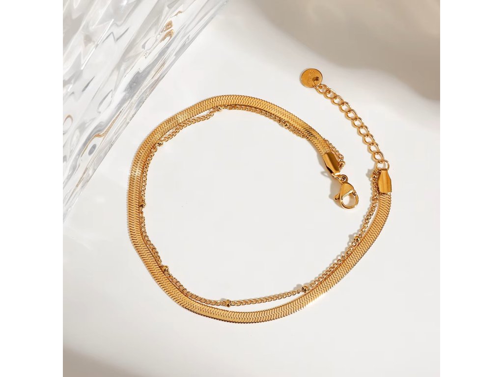 Lehká konstrukce zajišťuje pohodlí i při celodenním nošení. Délka 21,0 cm + 3,0 cm umožňuje snadné nastavení, aby náramek přirozeně kopíroval linii kotníku.