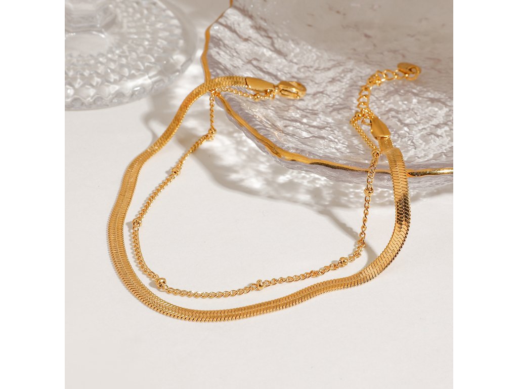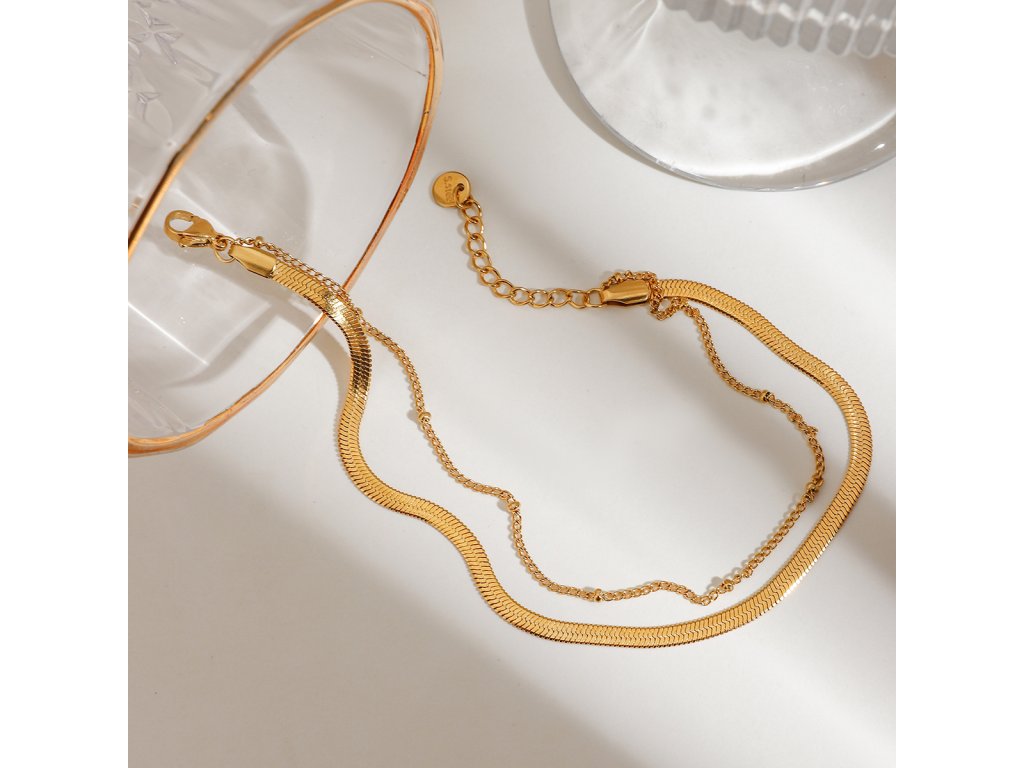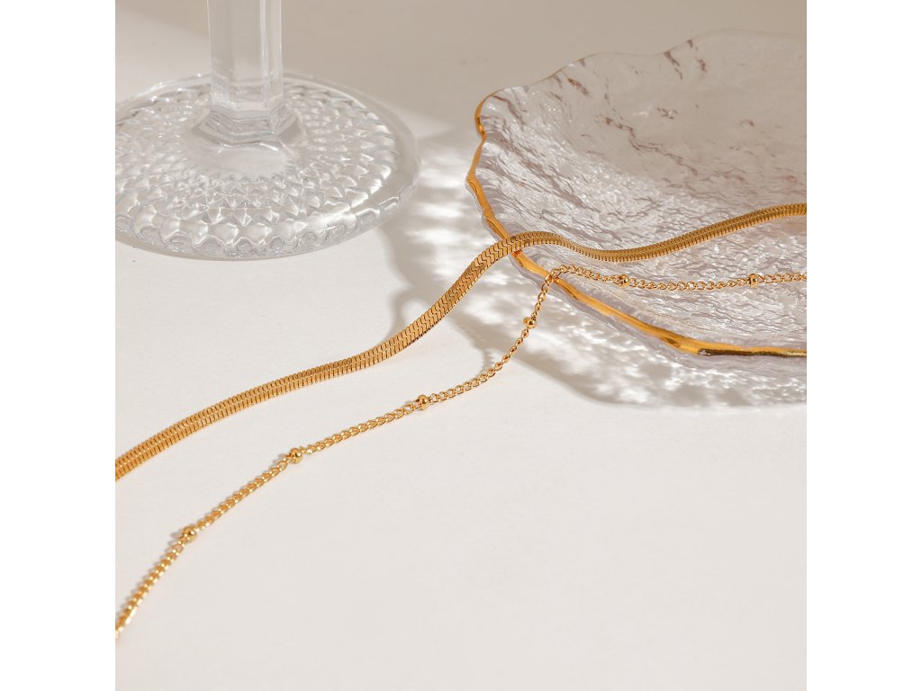 ELENYS Dualis pracuje s kontrastem dvou struktur – hladkého plochého řetízku a jemné řetízkové linie. Společně vytvářejí vyvážený, elegantní celek, který působí přirozeně a nadčasově.