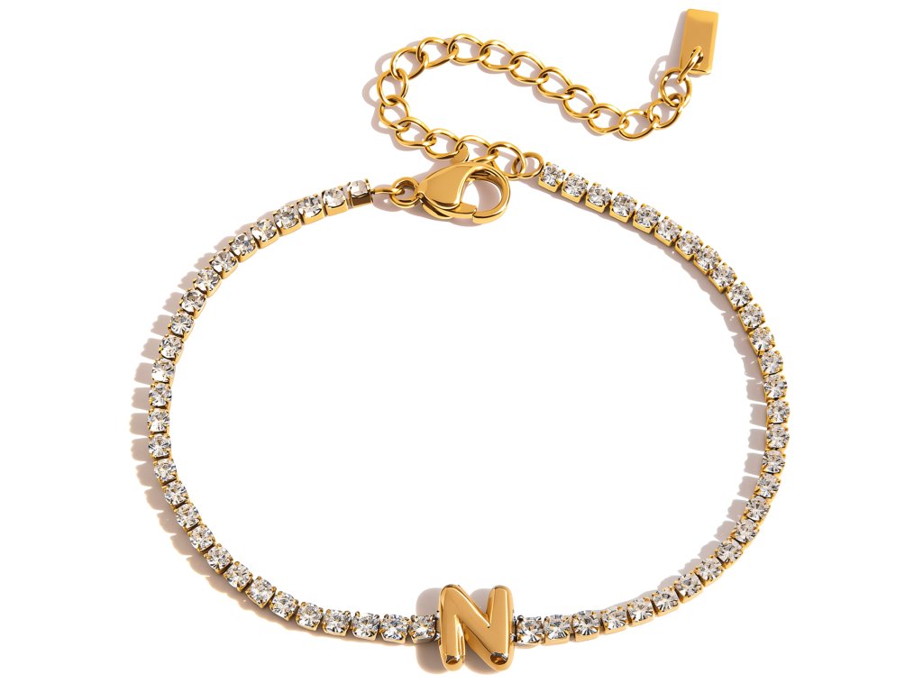 ELENYS Initial N pozlacený náramek 18K žluté zlato