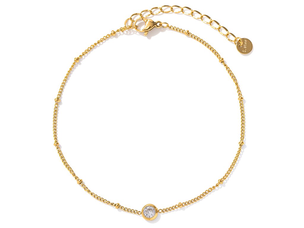 ELENYS Liora je minimalistický náramek na nohu, který staví na přesnosti detailu a klidné eleganci. Jemný řetízek doplňuje drobný zirkon zasazený do hladkého lůžka – čistý, vyvážený a přirozeně zářivý.