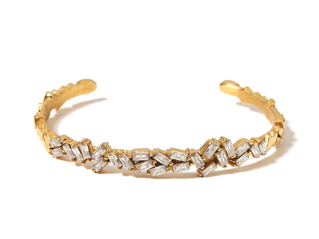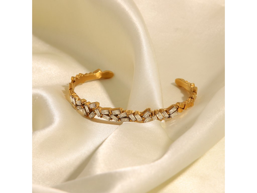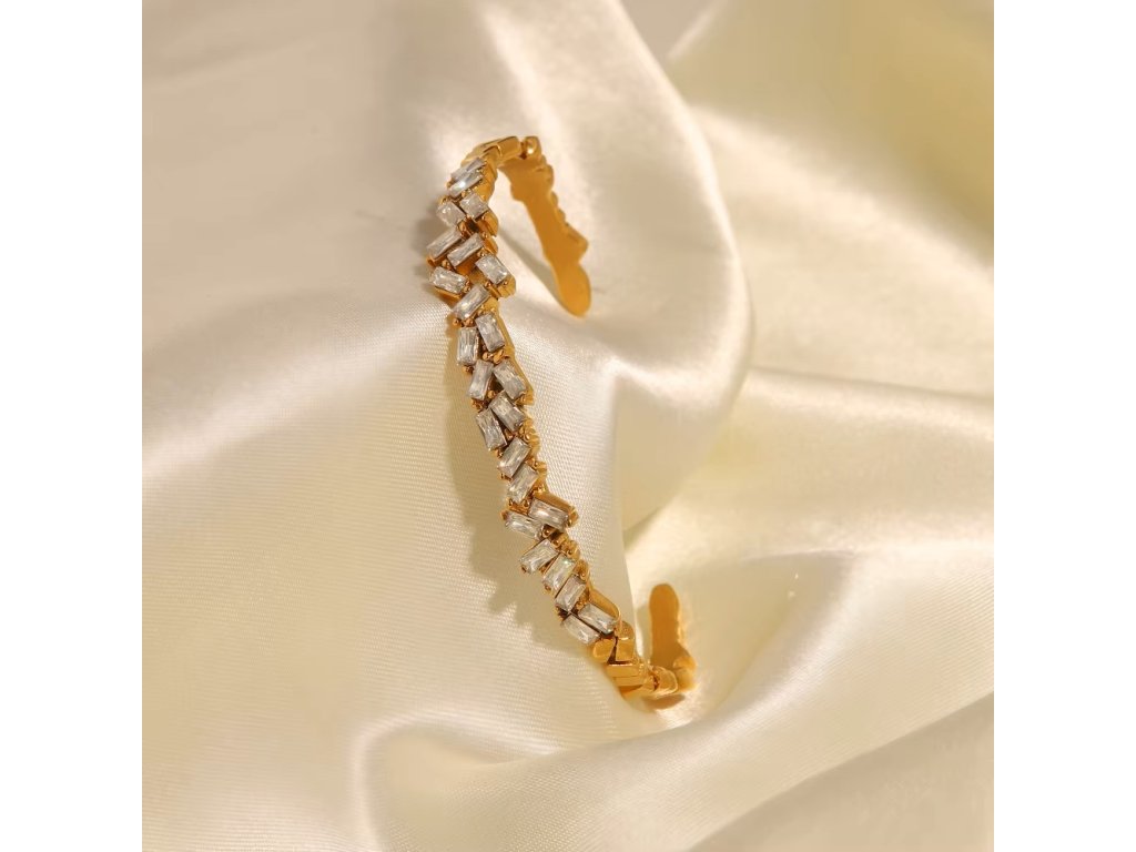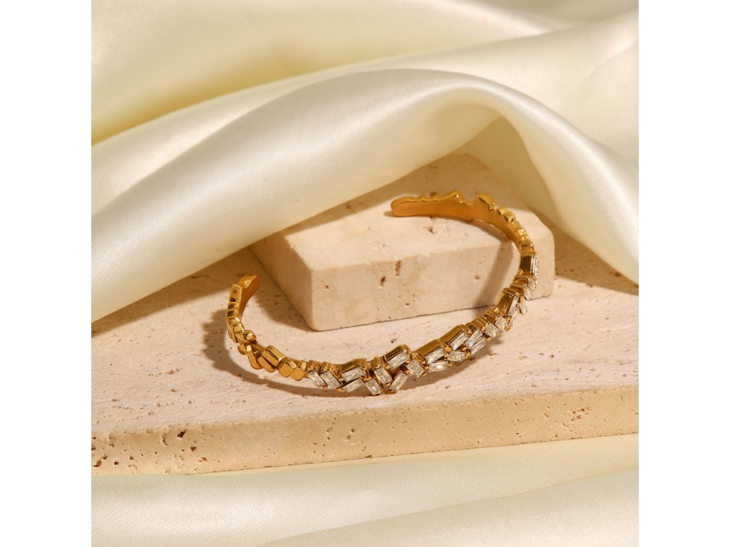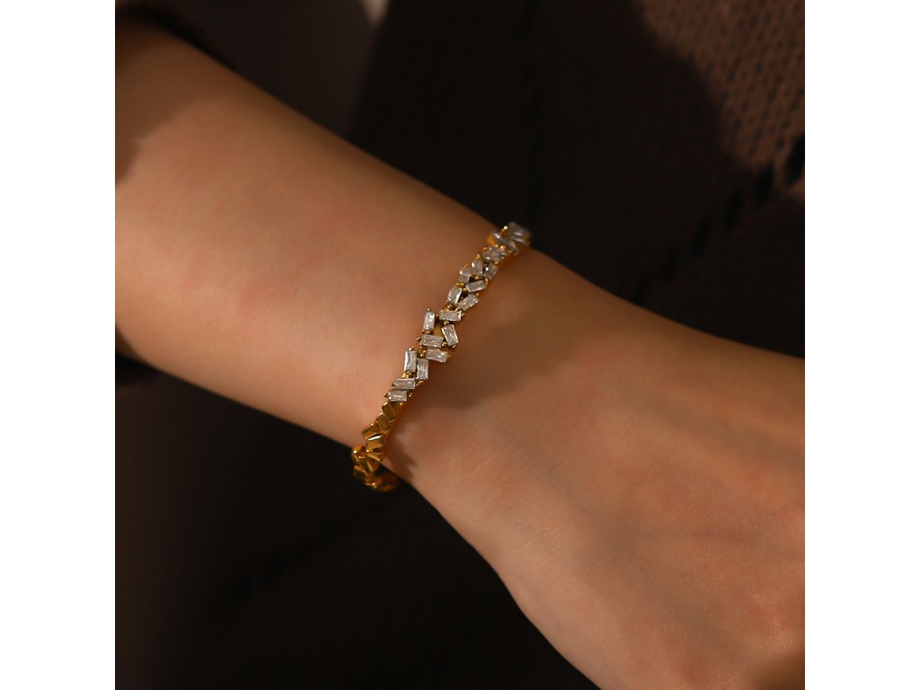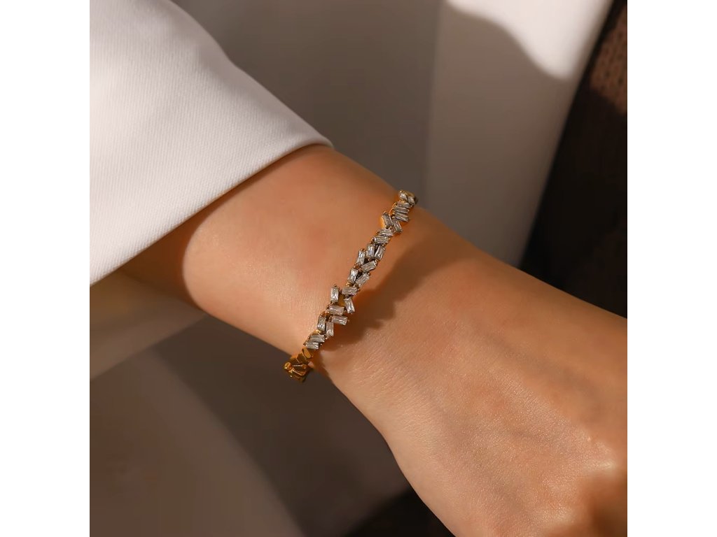 Zirkony jsou zasazeny tak, aby zachytávaly světlo jemně a rovnoměrně. Náramek působí luxusně, ale zůstává lehký, ženský a velmi nositelný.