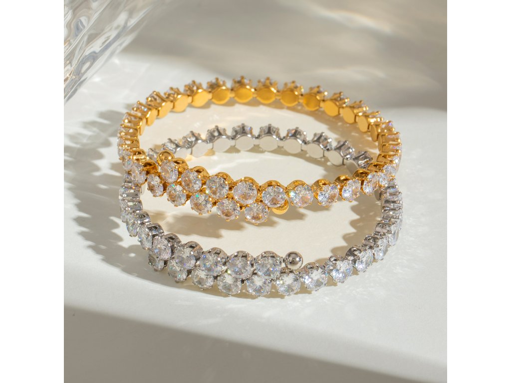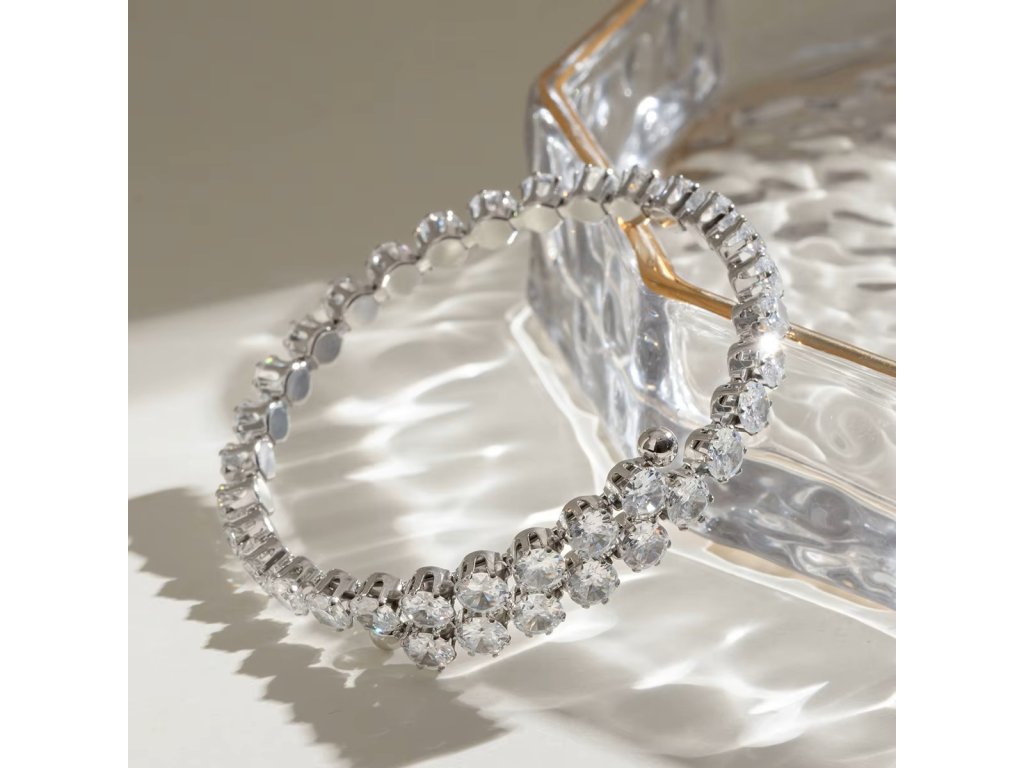 Čistá linie světla, jemný třpyt zirkonů a nadčasová elegance v pevném tvaru.