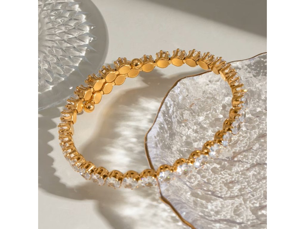Zirkony jsou broušeny tak, aby jemně zachytávaly světlo a působily čistě a luxusně bez přehnaného efektu. Náramek se tak hodí jak pro každodenní nošení, tak pro elegantnější příležitosti.